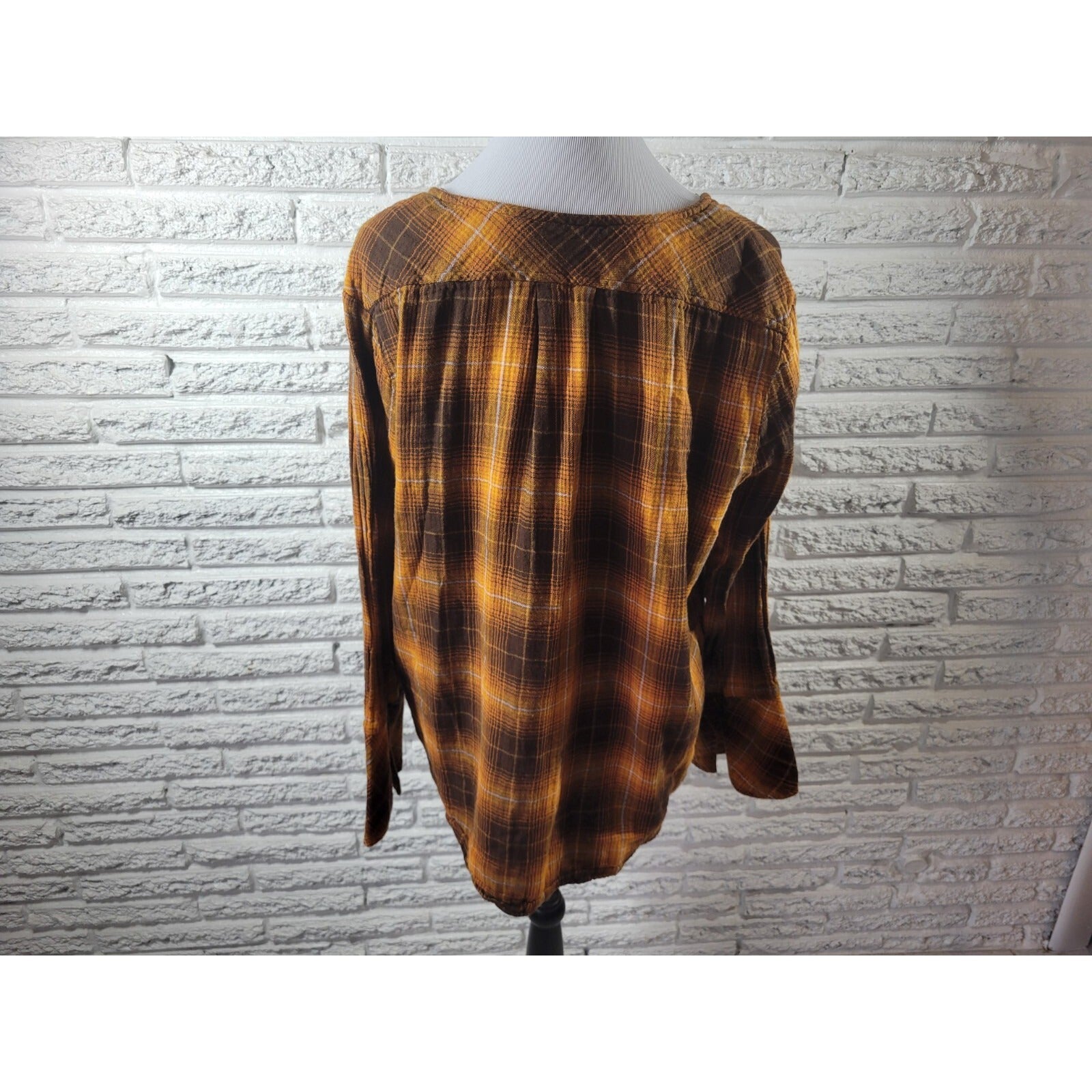 Time Tru Womens Top XXL 20 Plus Long Bell Sleeve Brown Plaid Casual Tied Hem