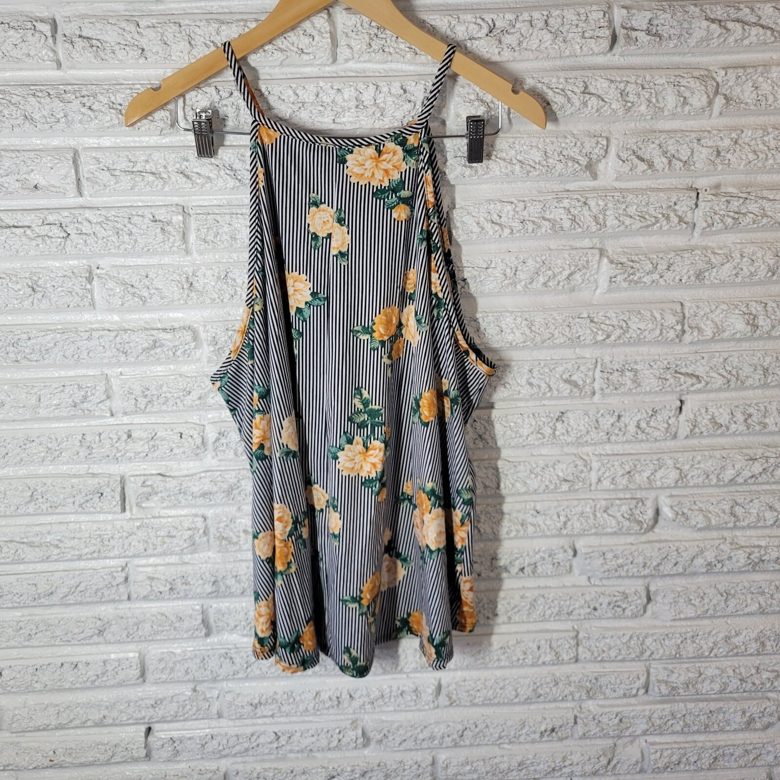Crafted for comfort and style, this TOP FASHION OF NEW YORK women's tank top is a versatile addition to any wardrobe. The size 3X top is designed with a flattering round neckline and lightweight polyester blend material that ensures a relaxed fit for all-day wear. Its classic spaghetti strap style, coupled with a charming floral pattern in tan and green hues, makes it a perfect choice for casual outings or travel adventures. The tank top's stretch fabric offers flexibility, while the keyhole neck detail adds a touch of elegance. This machine-washable garment is easy to care for, ensuring that it remains a go-to piece for various occasions. Made in the United States, this basic sleeveless top is an effortless blend of functionality and fashionable flair.