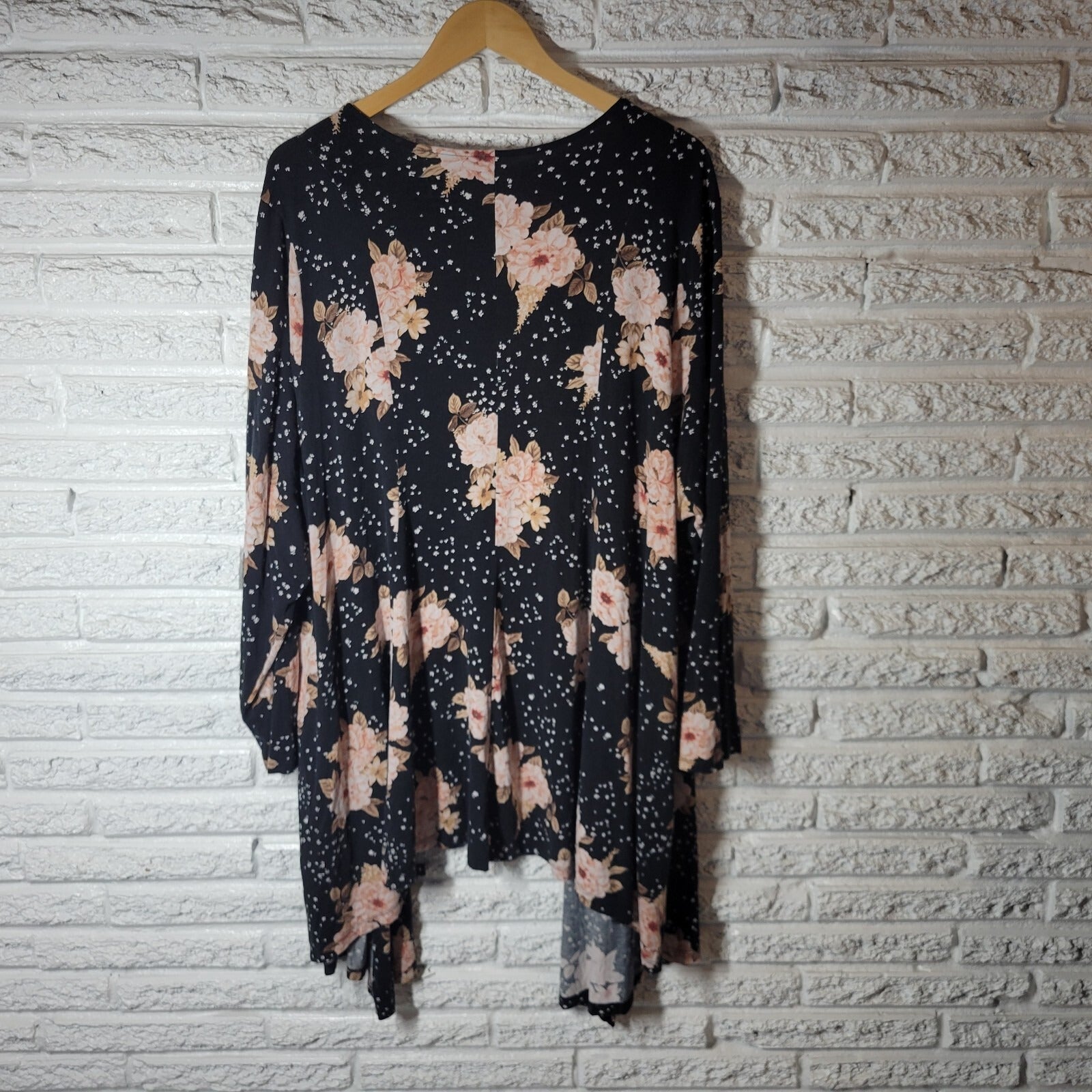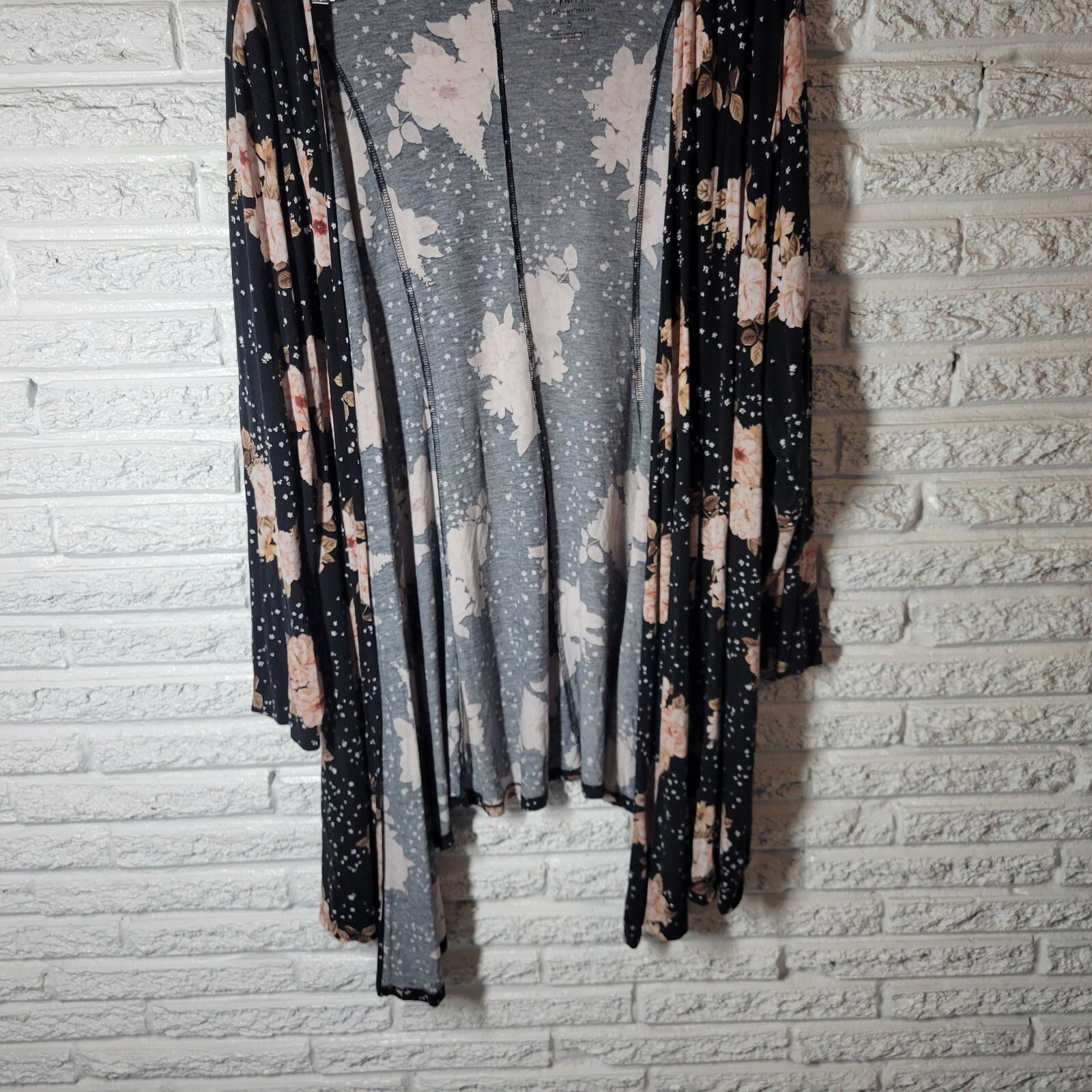 Torrid Super Soft Knits Womens Top 5 5X Plus Open Black Floral Casual Asymmetric