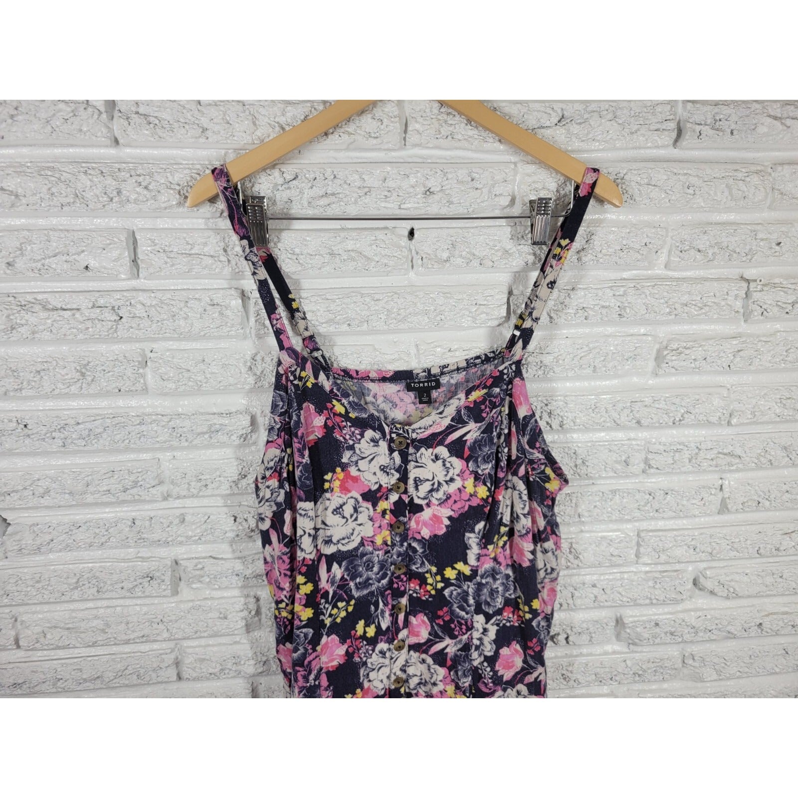 This beautiful Torrid women's top is perfect for any casual occasion. The floral pattern and blue color make it a great addition to any wardrobe. It features a V-neckline, spaghetti straps, and a pullover closure for easy wear. Made from a comfortable and stretchy blend of spandex and rayon, this camisole is machine washable for easy care. The size is 2X and it has a regular fit. Don't miss out on adding this stylish and versatile top to your collection.