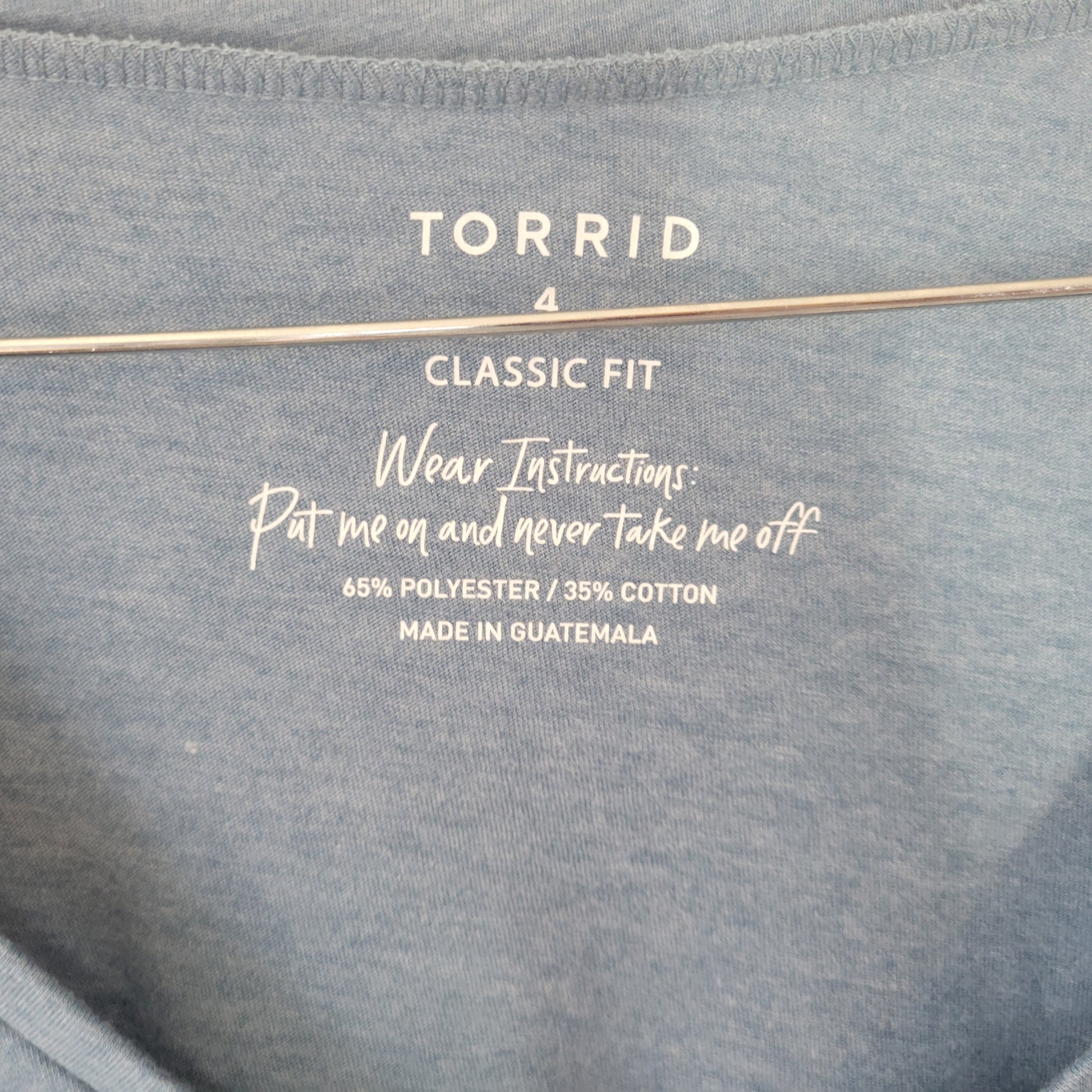 The Torrid Classic Fit Women's Top in 4X size is a classic blue tee with a solid pattern, v-neckline, and long sleeves. Made of a comfortable polyester blend jersey fabric, this pullover top is perfect for casual or travel occasions. The casual sleeve and stretchy material make it suitable for all seasons, while the basic style and plus size fit ensure a flattering and comfortable look for women.