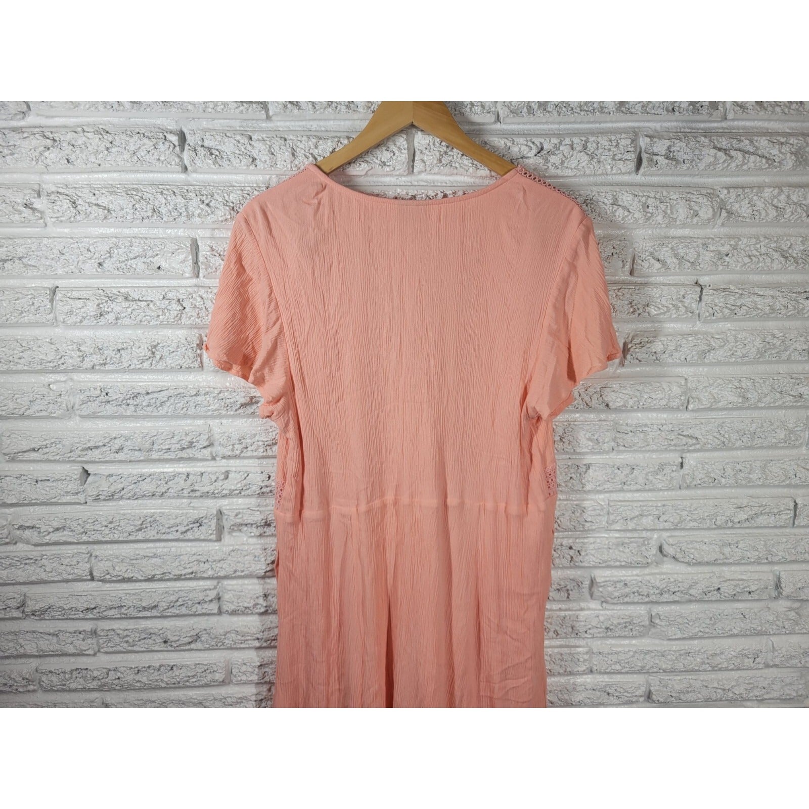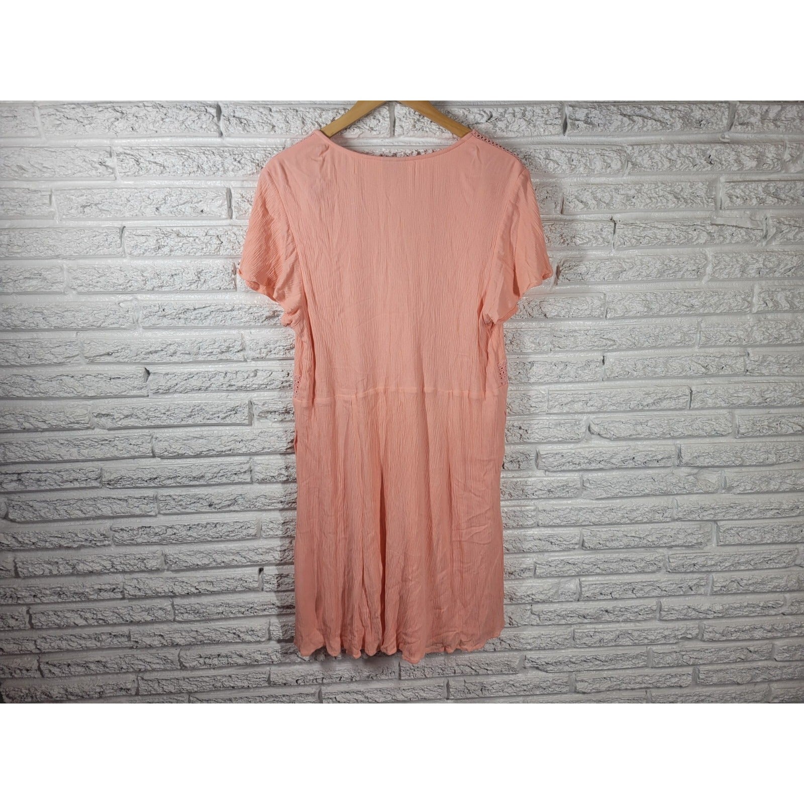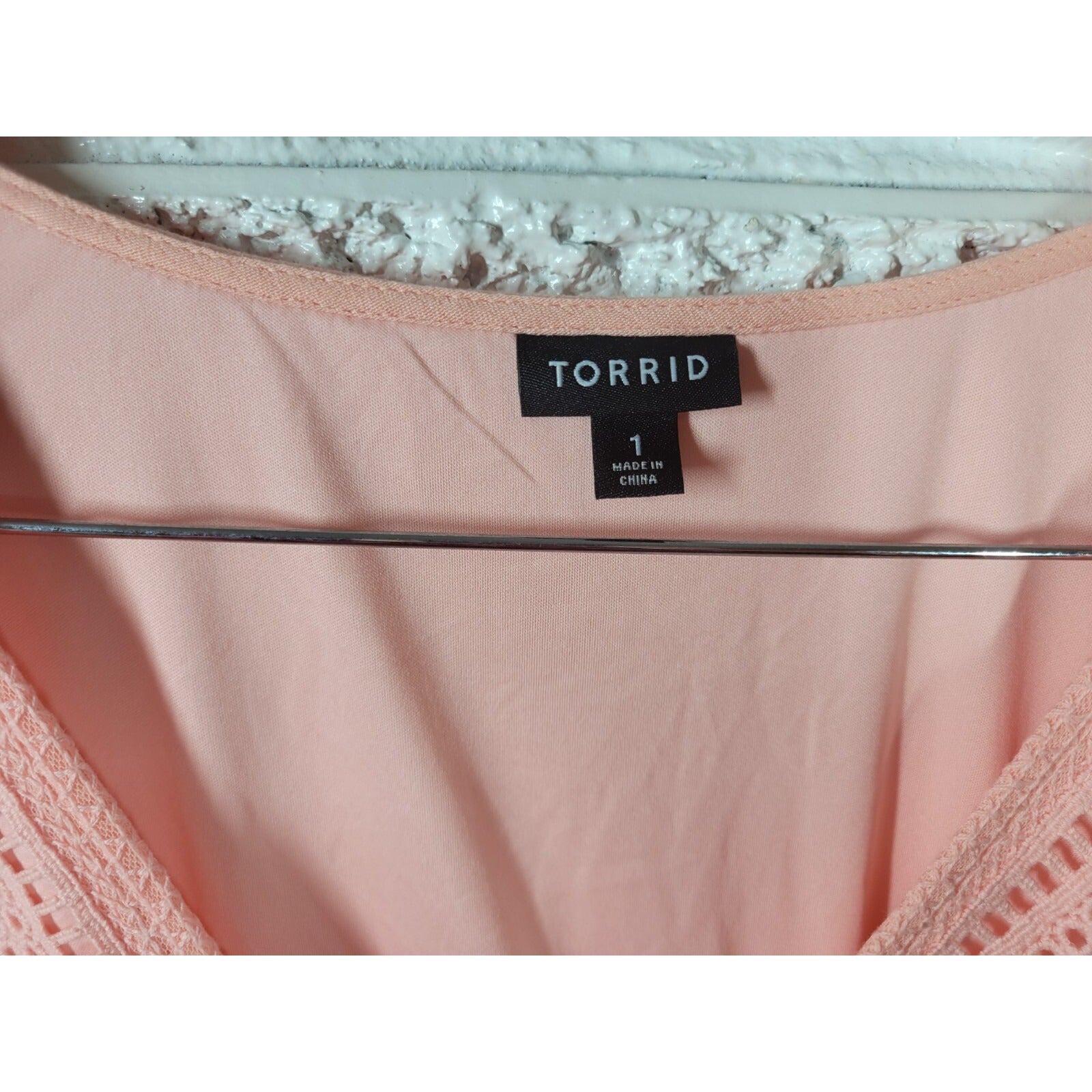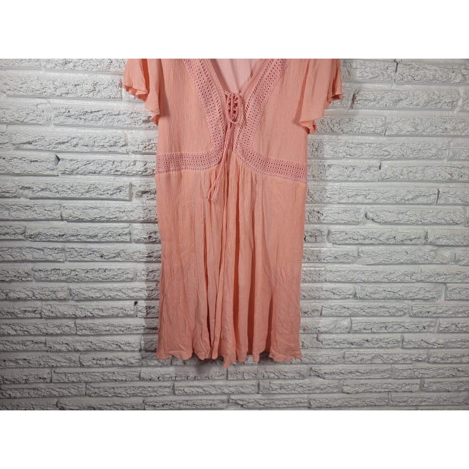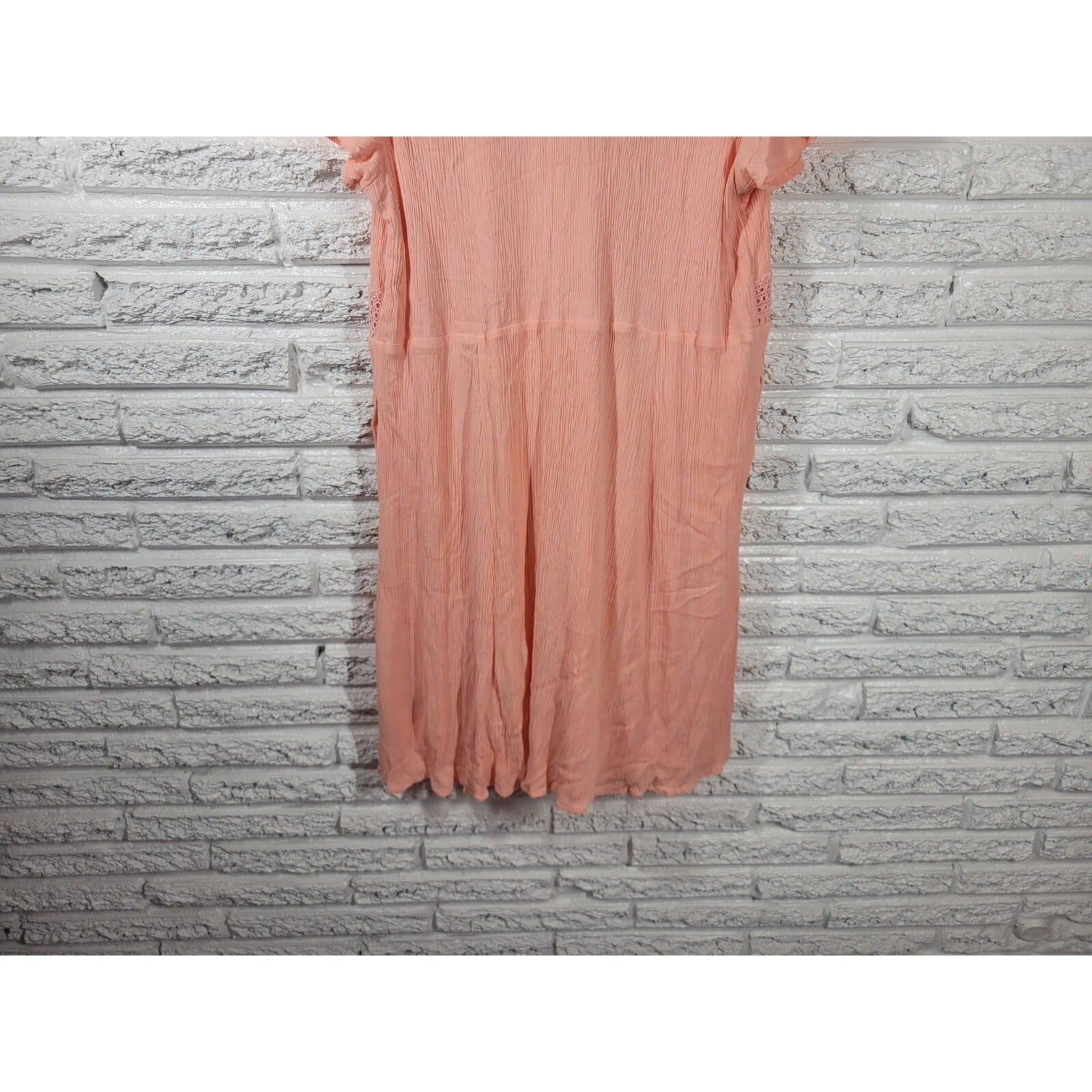 Torrid Womens Dress 1 1X Plus Flutter Sleeve Pink Crochet Lined Crinkle Lace