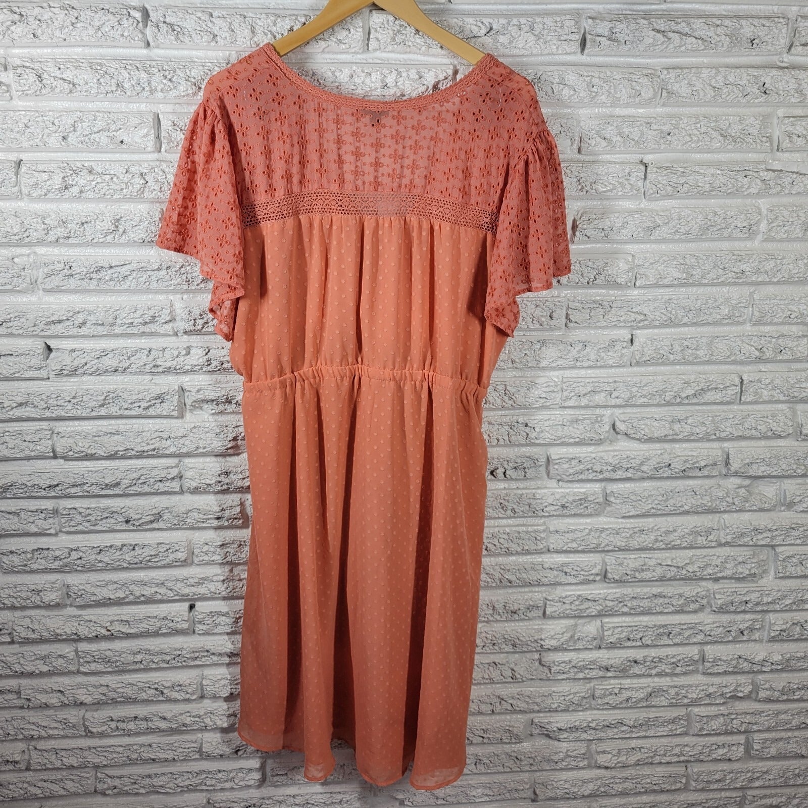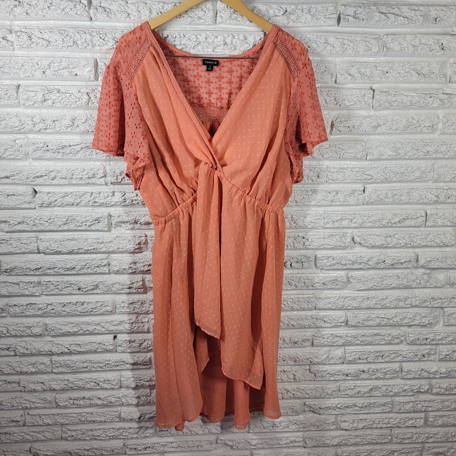Torrid Womens Dress 3 3X Plus Sheath High Low Orange Swiss Dot Eyelet Lined