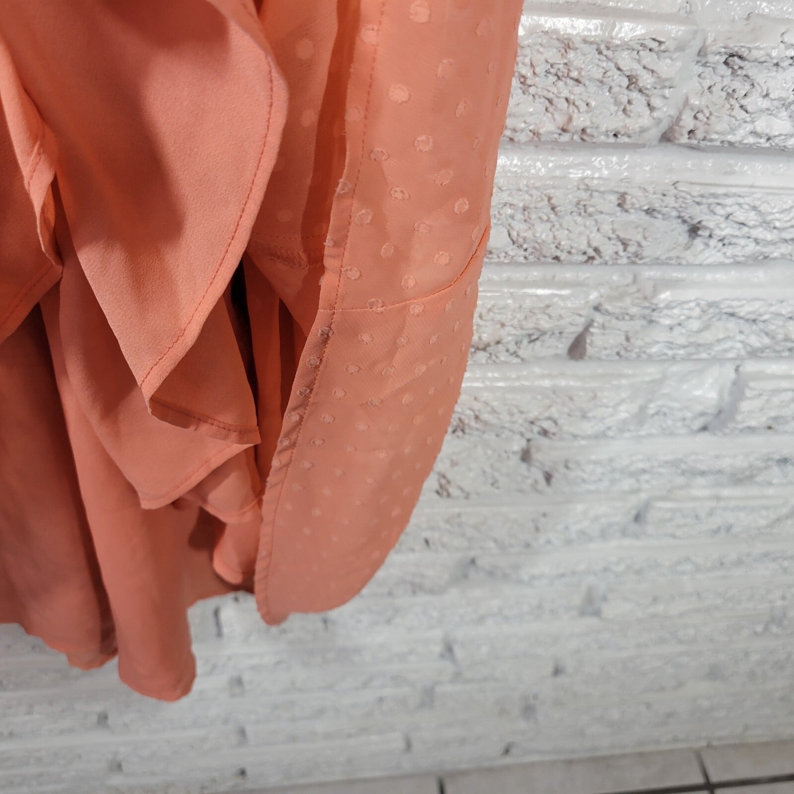 This beautiful Torrid dress is perfect for any casual occasion. The dress features a solid pattern with a V-neckline and short sleeves. It comes in a striking orange color with Swiss dots and eyelets that add a touch of elegance. The pullover closure and knee-length make it suitable for any season, whether it's winter, summer, fall, or spring. The dress is made of polyester and is machine washable for easy care. The asymmetric hemline and lined interior provide extra comfort and style. The dress is available in size 3X and is perfect for plus-sized women. Add this stylish sheath dress to your wardrobe today!