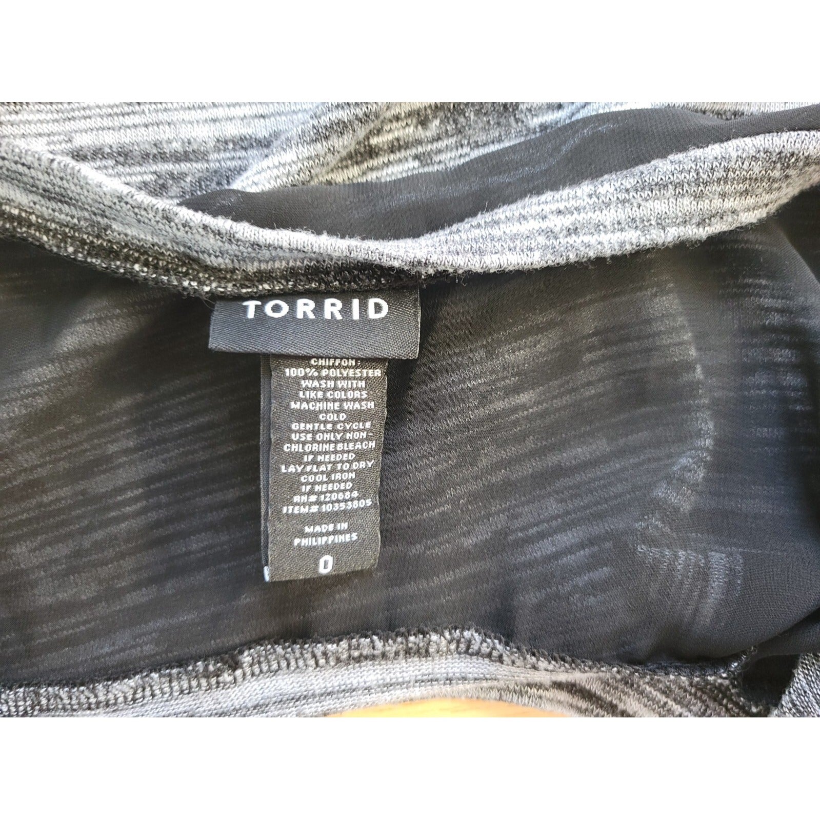 This Torrid women's shirt is a perfect addition to your casual wardrobe. The black heather color adds a touch of sophistication to the shirt, while the polyester blend material ensures comfort and durability. The shirt features a round neckline and cap sleeves, with a mesh back for added style.   The shirt is machine washable, making it easy to care for, and the stretchy material ensures a perfect fit for all seasons. Whether you're going out with friends or running errands, this shirt is a great choice. Available in size 0X, this basic t-shirt is a must-have for any Torrid fan.