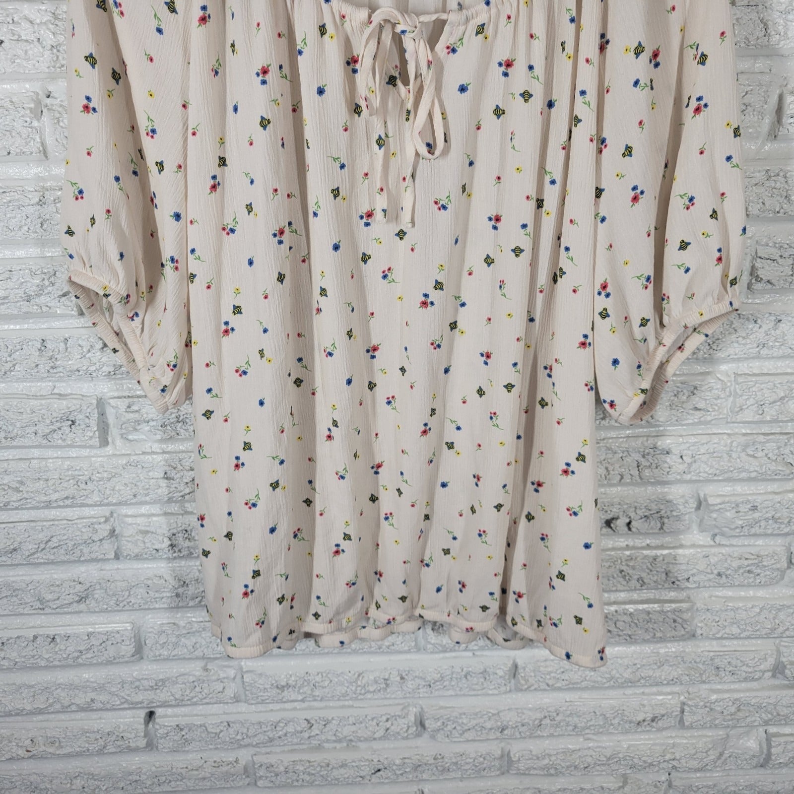Torrid Womens Top 2 2X Plus Short Sleeve White Pink Floral Elastic Waist Casual