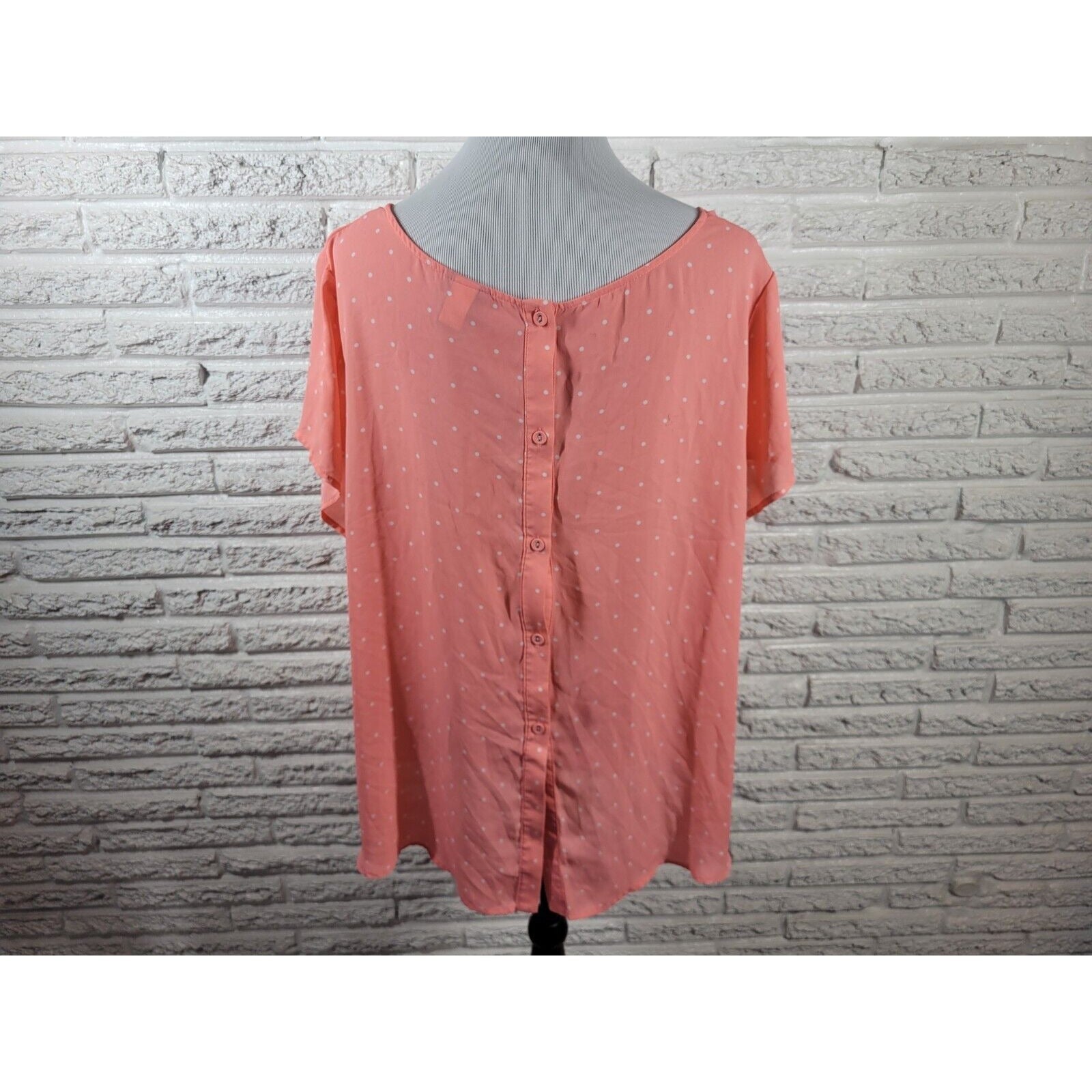 Torrid Womens Top 3 3X Plus Short Sleeve Button Back Pink Polka Dot Polyester