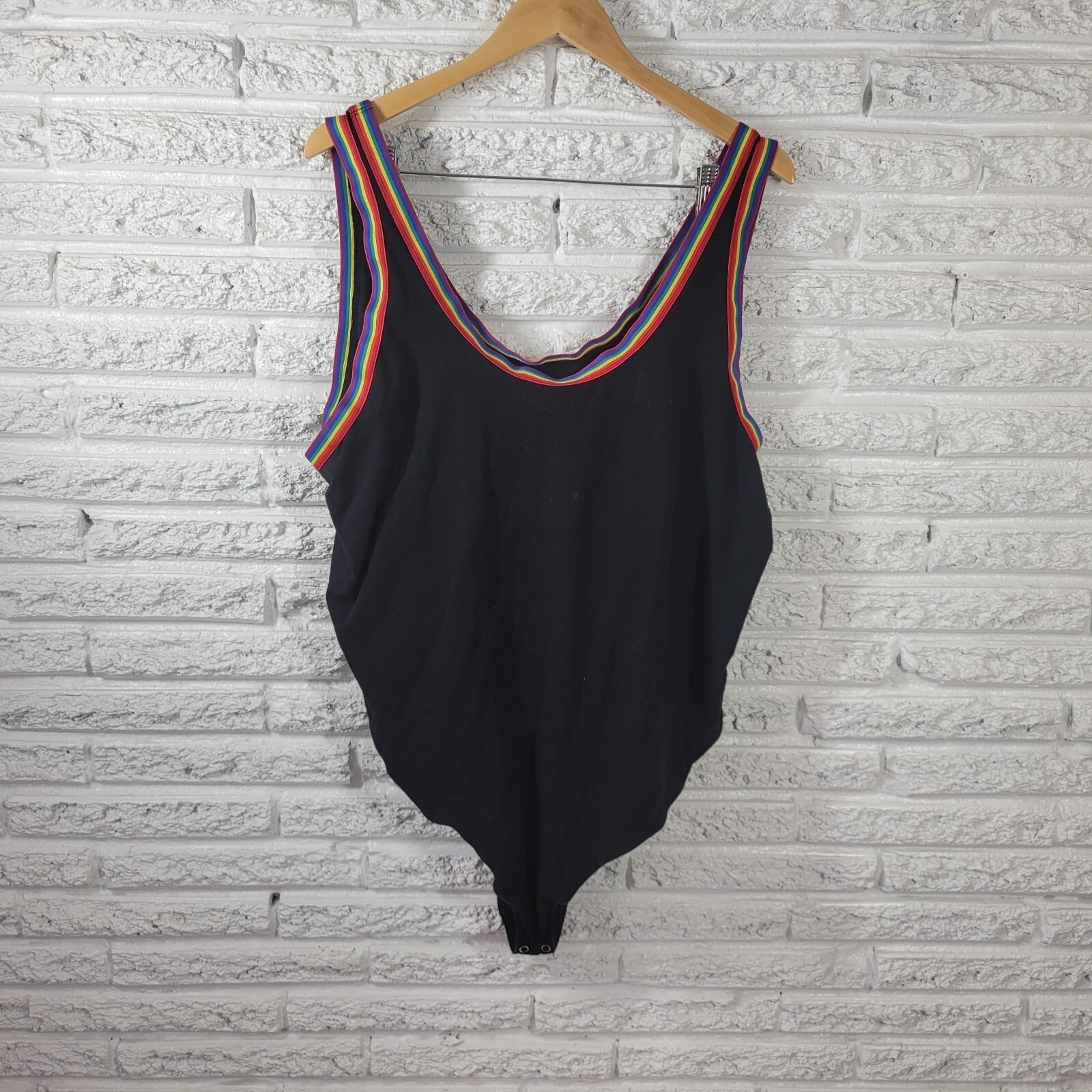 Torrid Womens Top 5 5X Plus Bodysuit Black Rainbow Wide Strap Snap Lightweight
