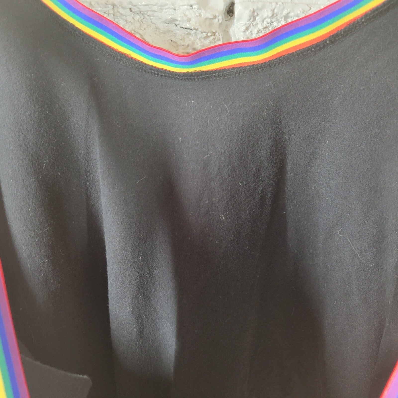 This Torrid women's bodysuit is perfect for a casual day out. The black cotton blend material with a rainbow pattern is both lightweight and stretchy, making it comfortable to wear. The wide straps and snap design add a touch of style to this one piece bodysuit. It's machine washable and easy to care for, making it a practical addition to any wardrobe. This bodysuit is available in size 5X and is perfect for plus size women. Get your hands on this stylish and comfortable Torrid bodysuit today!