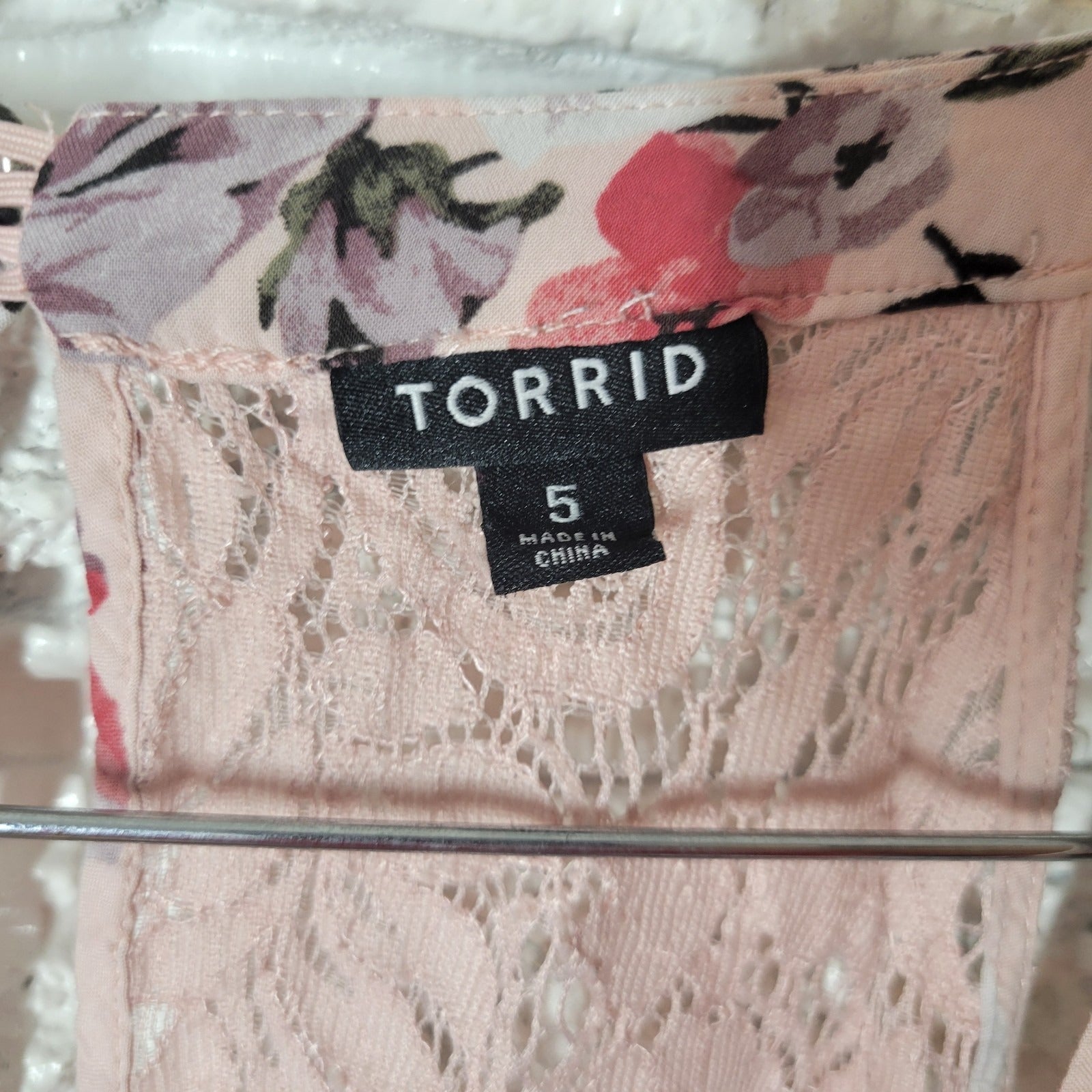 Torrid Womens Top 5 5X Plus Swing Sleeveless Pink Floral Lightweight Rayon Lace