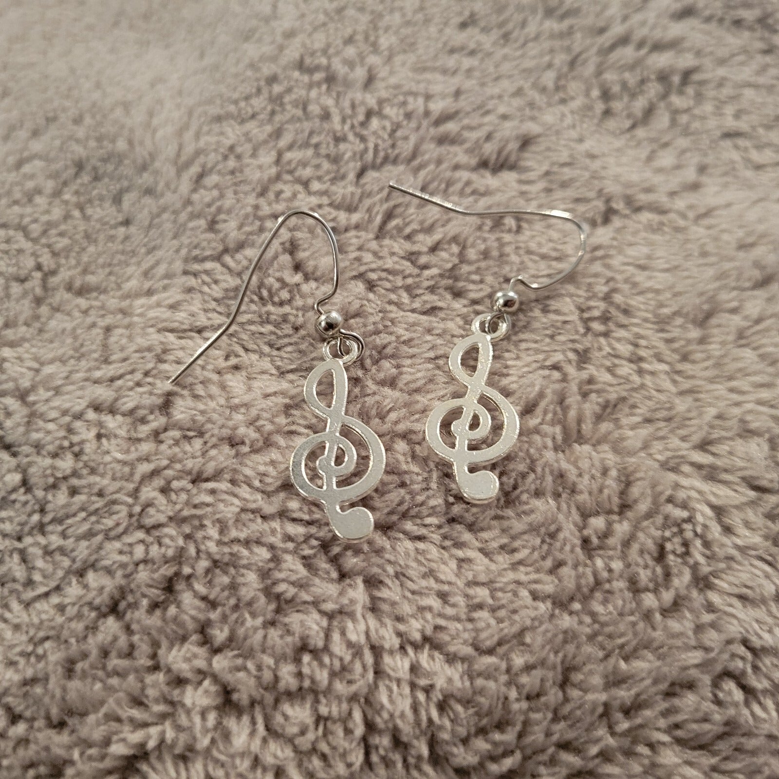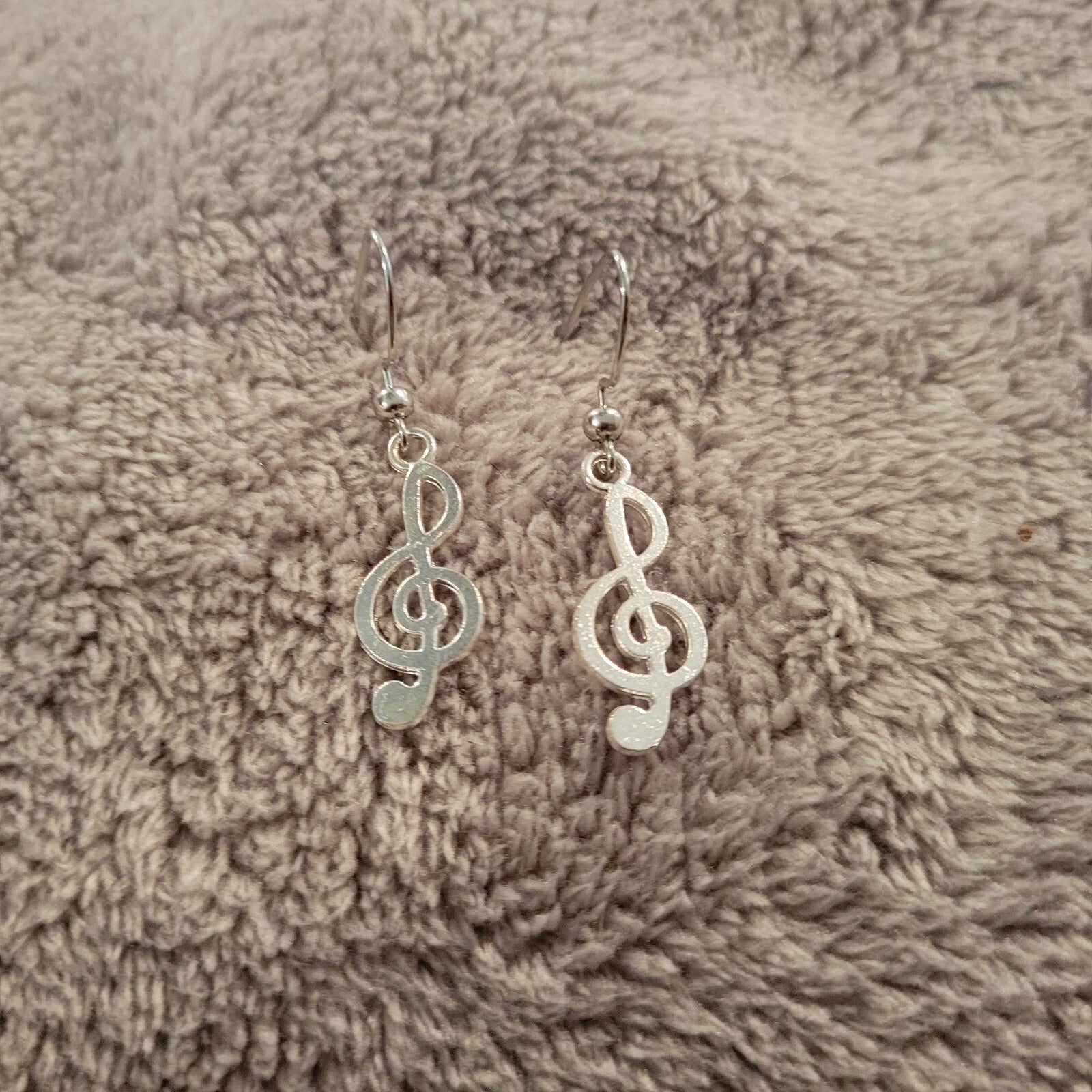 Treble Clef ##2 Womens Earrings One Pair Music Silver Tone Alloy Band Orchestra