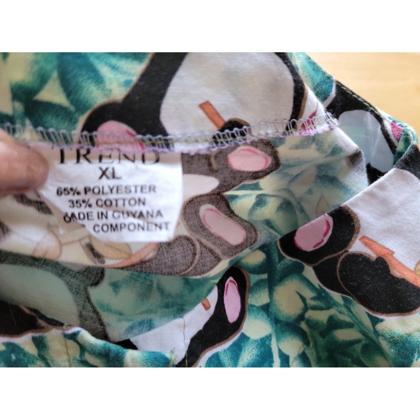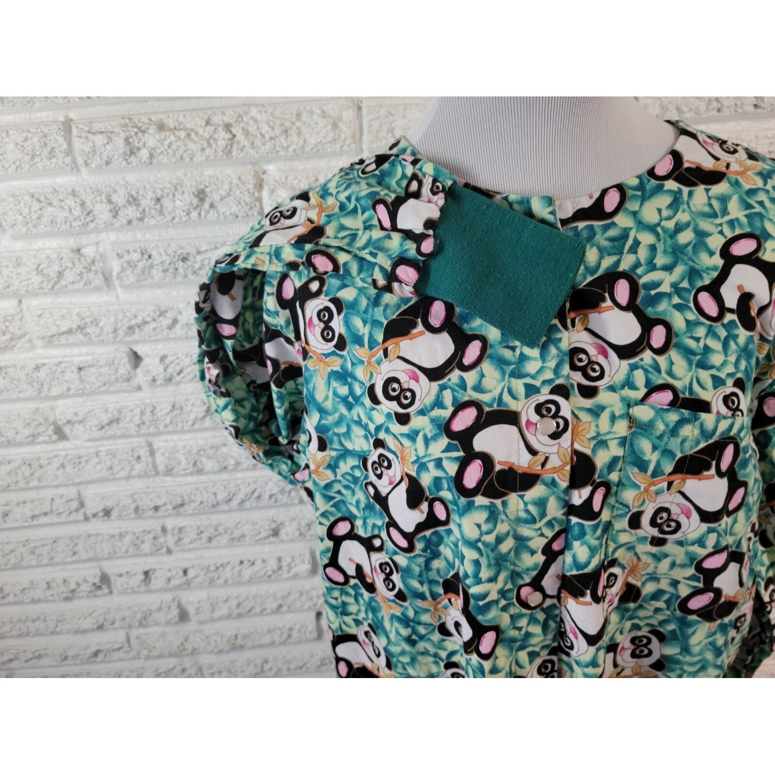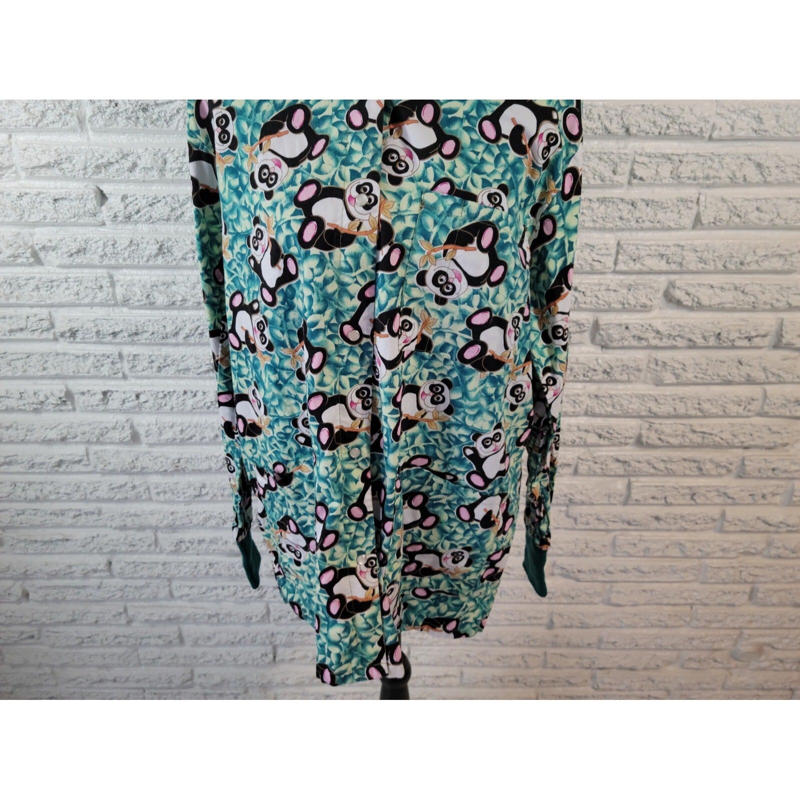 Trend Panda Bear Scrub Top Extra Large XL Long Sleeve Snap Up Poly Blend Blue