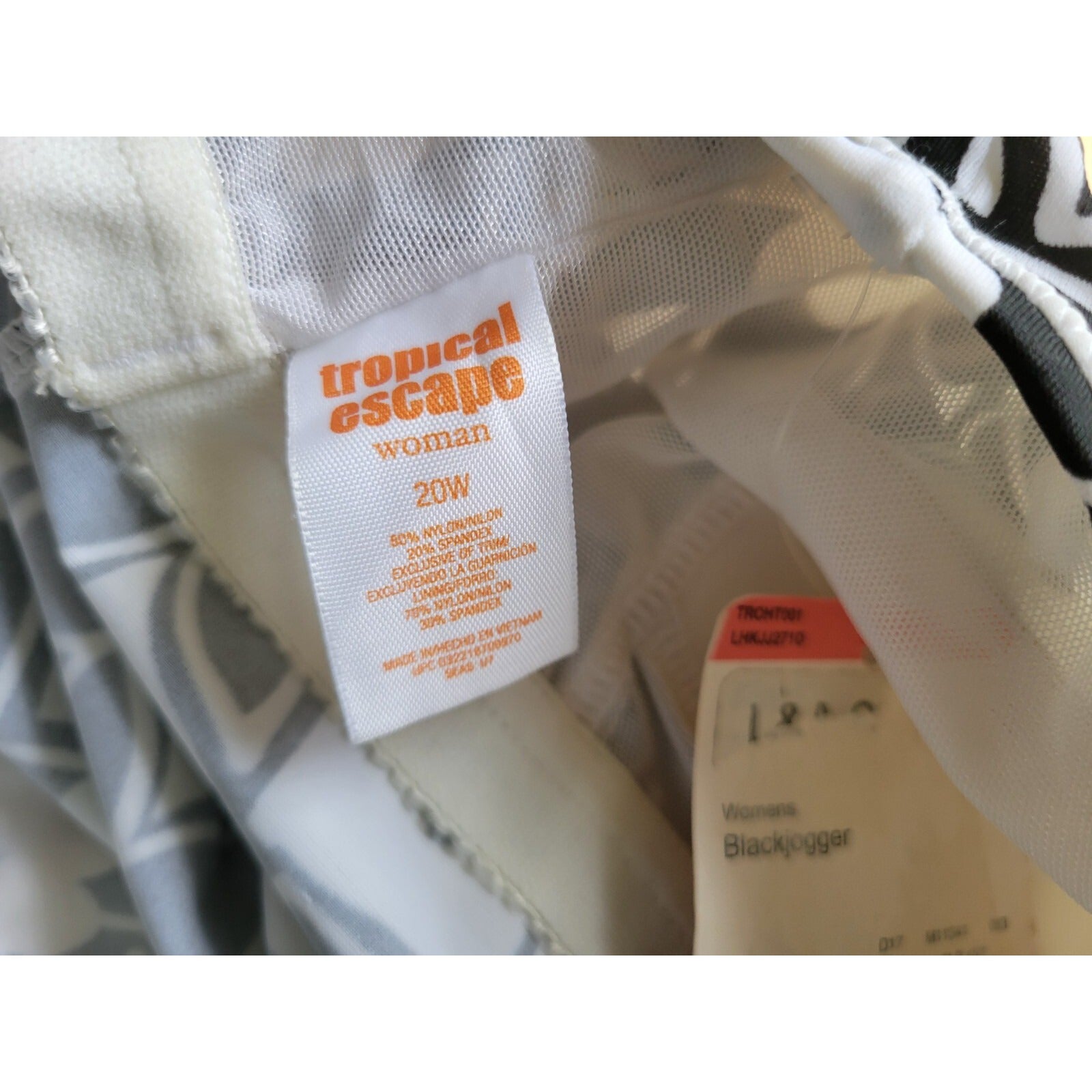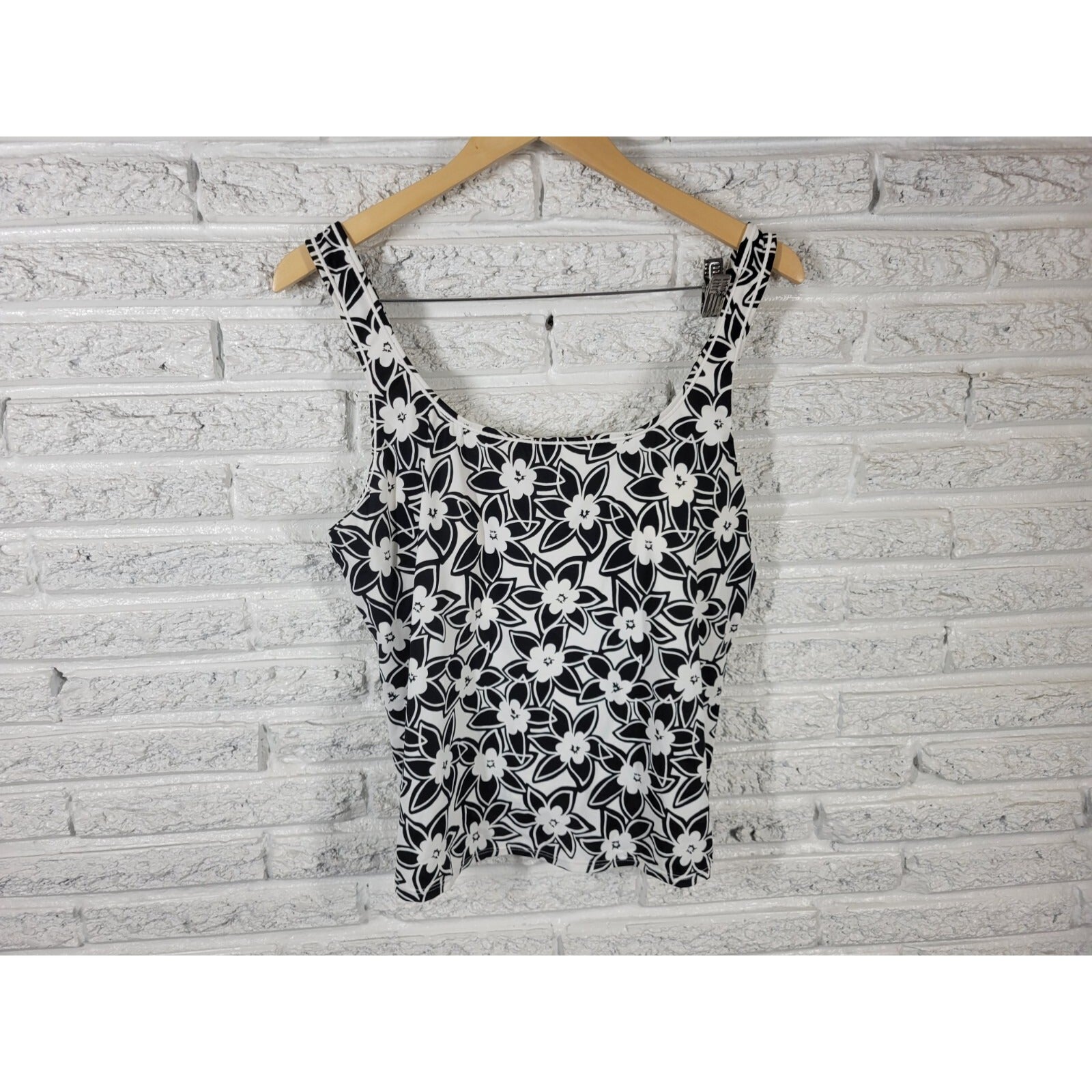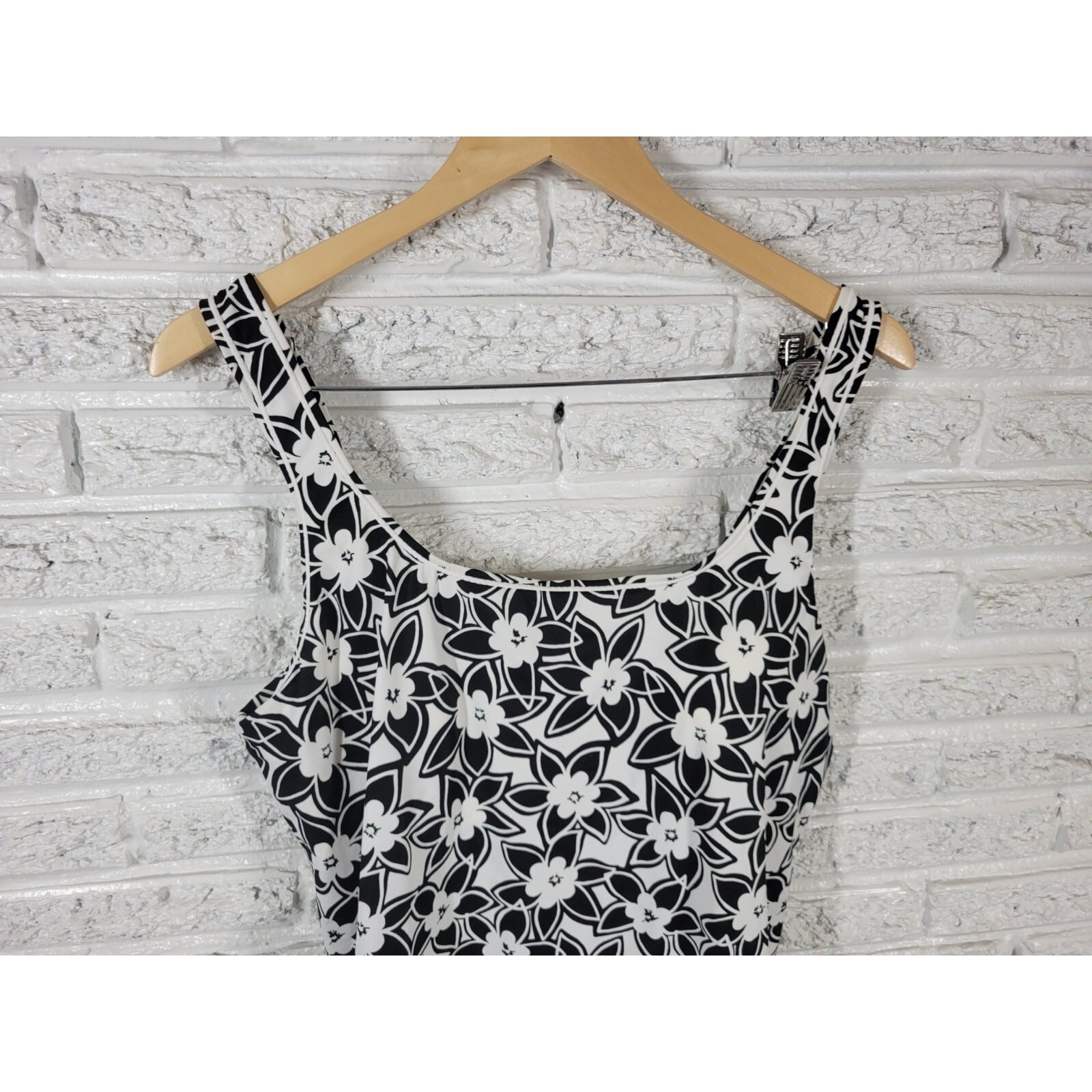Elevate your swimwear game with this stunning Tropical Escape women's swim top. The black floral pattern is perfect for a tropical escape or a day at the beach. This top comes in size 20W and features wide straps for comfort and support. Made with a combination of nylon and spandex, this top is both soft and stretchy. The built-in bra provides added support, making it perfect for any beach or pool day. Hand wash only to keep the top looking its best. Get ready to turn heads with this stylish and comfortable swim top from Tropical Escape.