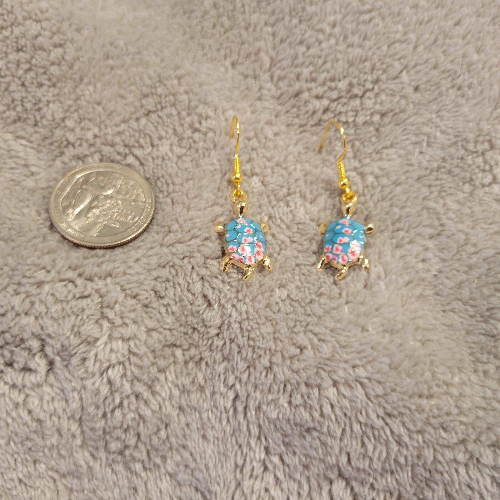 Turtle #1 Womens Earrings One Pair Zinc Alloy Blue Pink Hanging Dangle Gold Tone
