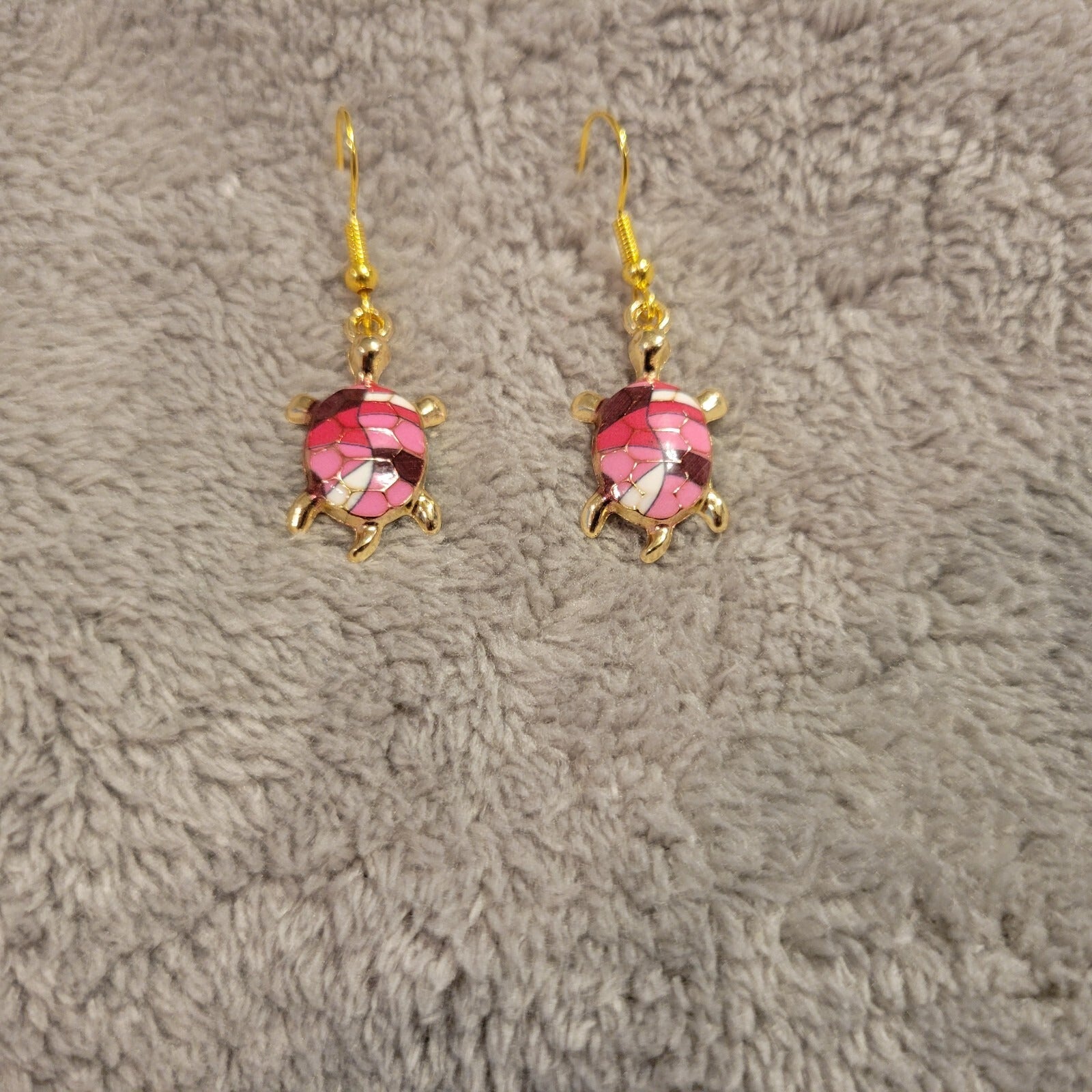 Turtles #5 Womens Earrings One Pair Pink Red White Zinc Alloy Hanging Gold Tone