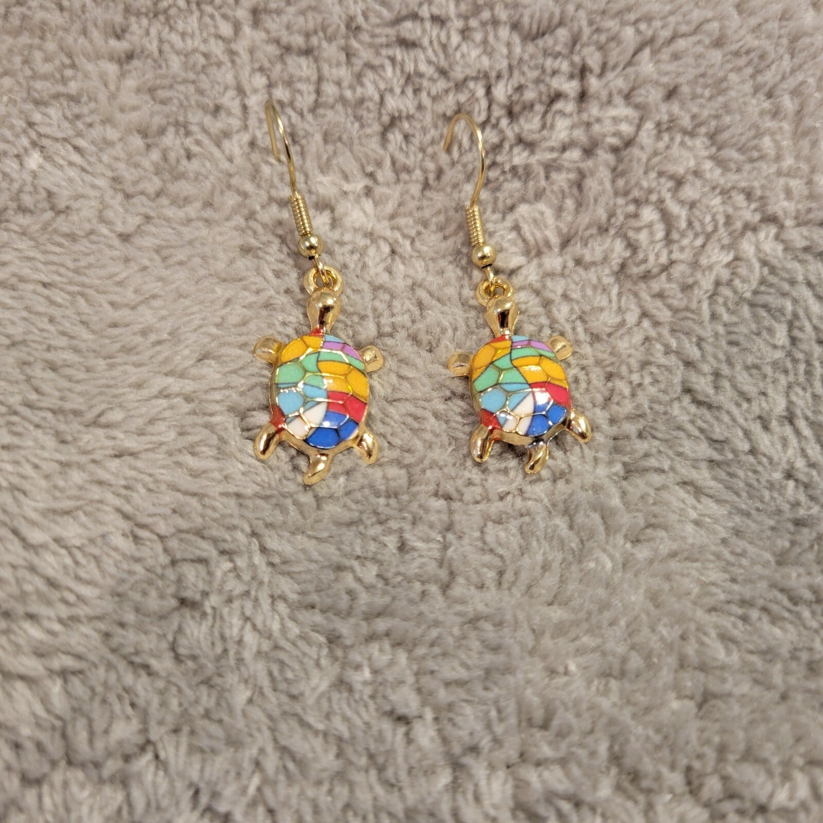 Turtles #6 Womens Earrings One Pair Blue Yellow Zinc Alloy Hanging Gold Tone