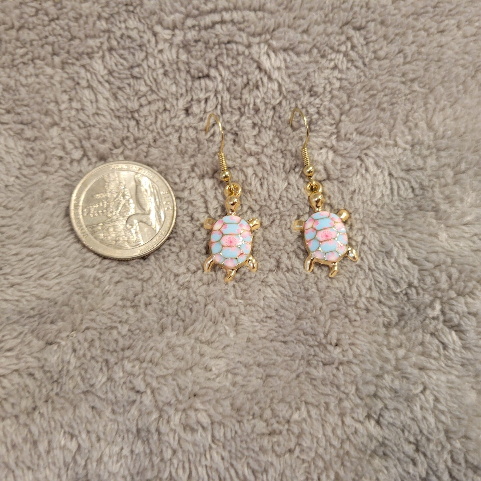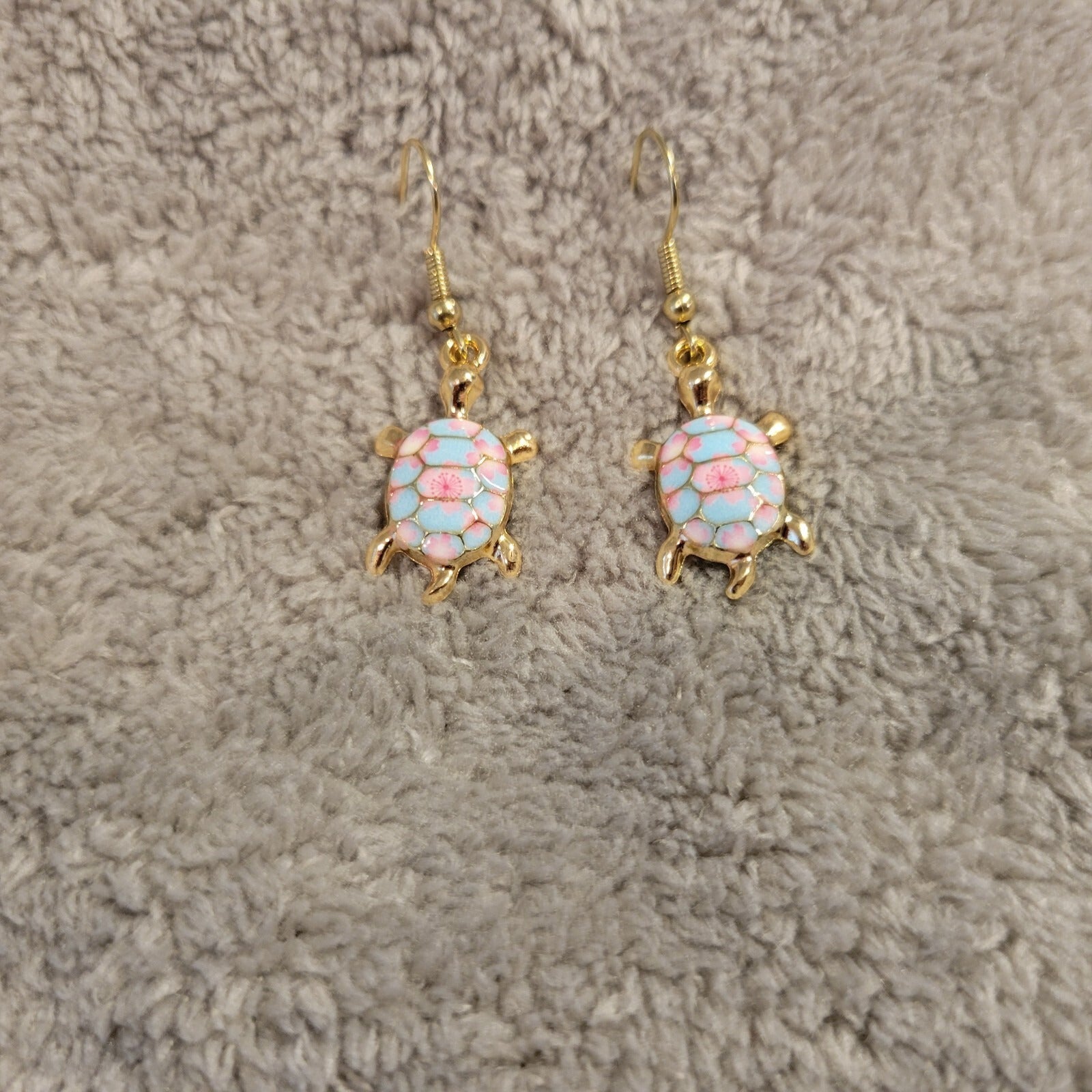 Turtles #9 Womens Earrings One Pair Pink Blue Zinc Alloy Hanging Gold Tone