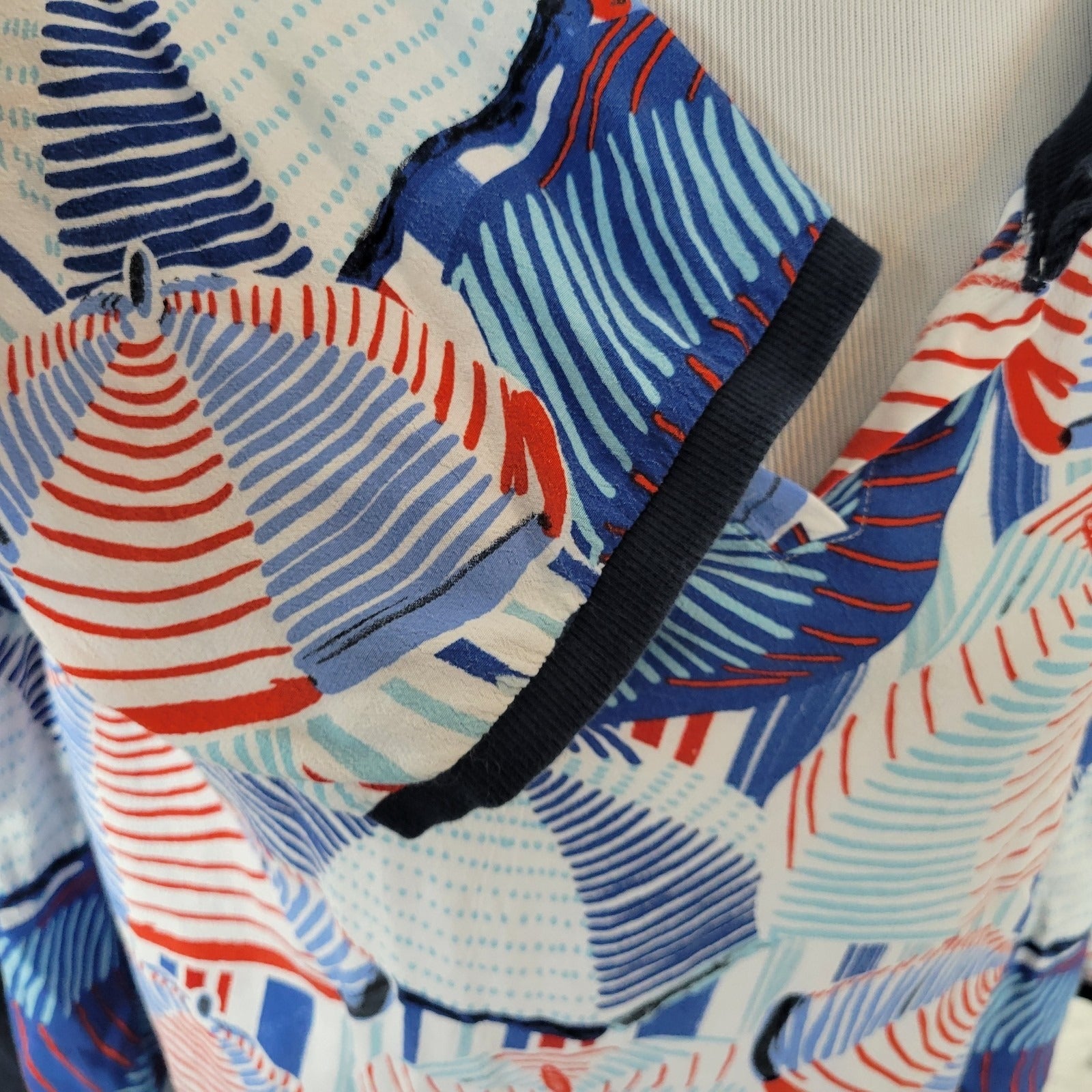 Ulla Popken Womens Top 20 22 Plus 3/4 Sleeve Blue Geometric Viscose Lightweight