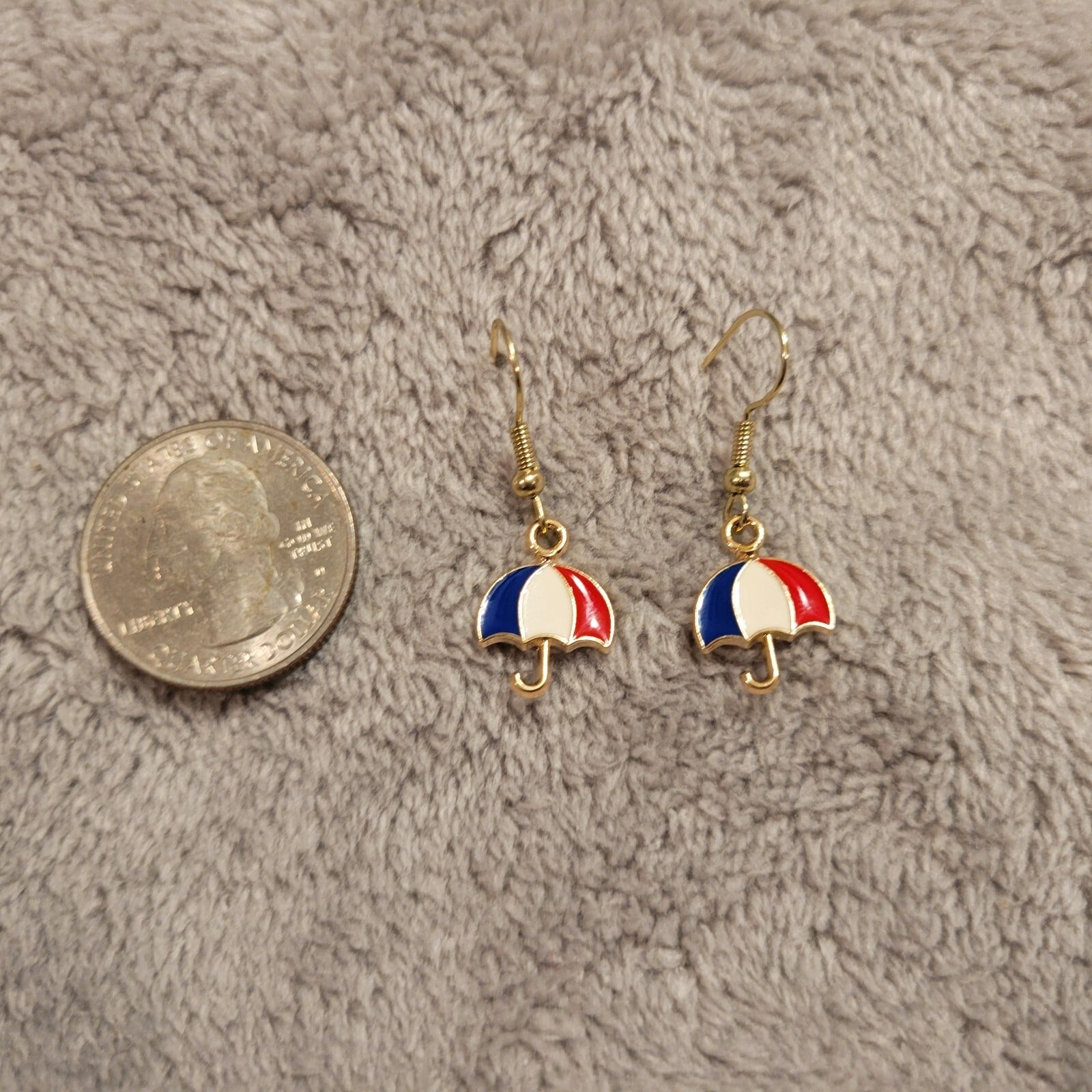 Umbrella #2 Womens Earrings One Pair Hanging Dangle Gold Tone Alloy Novelty