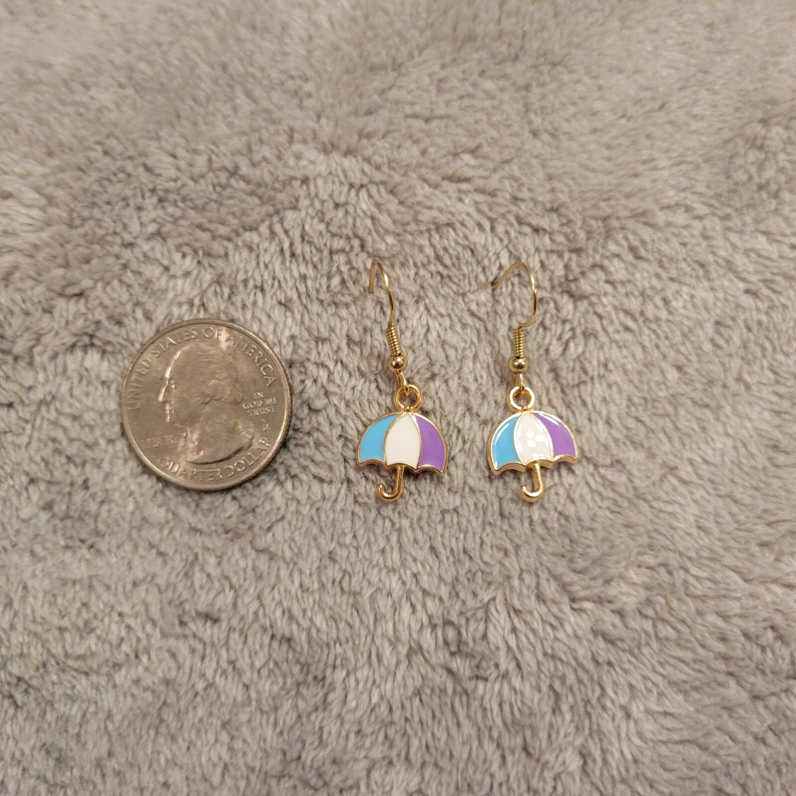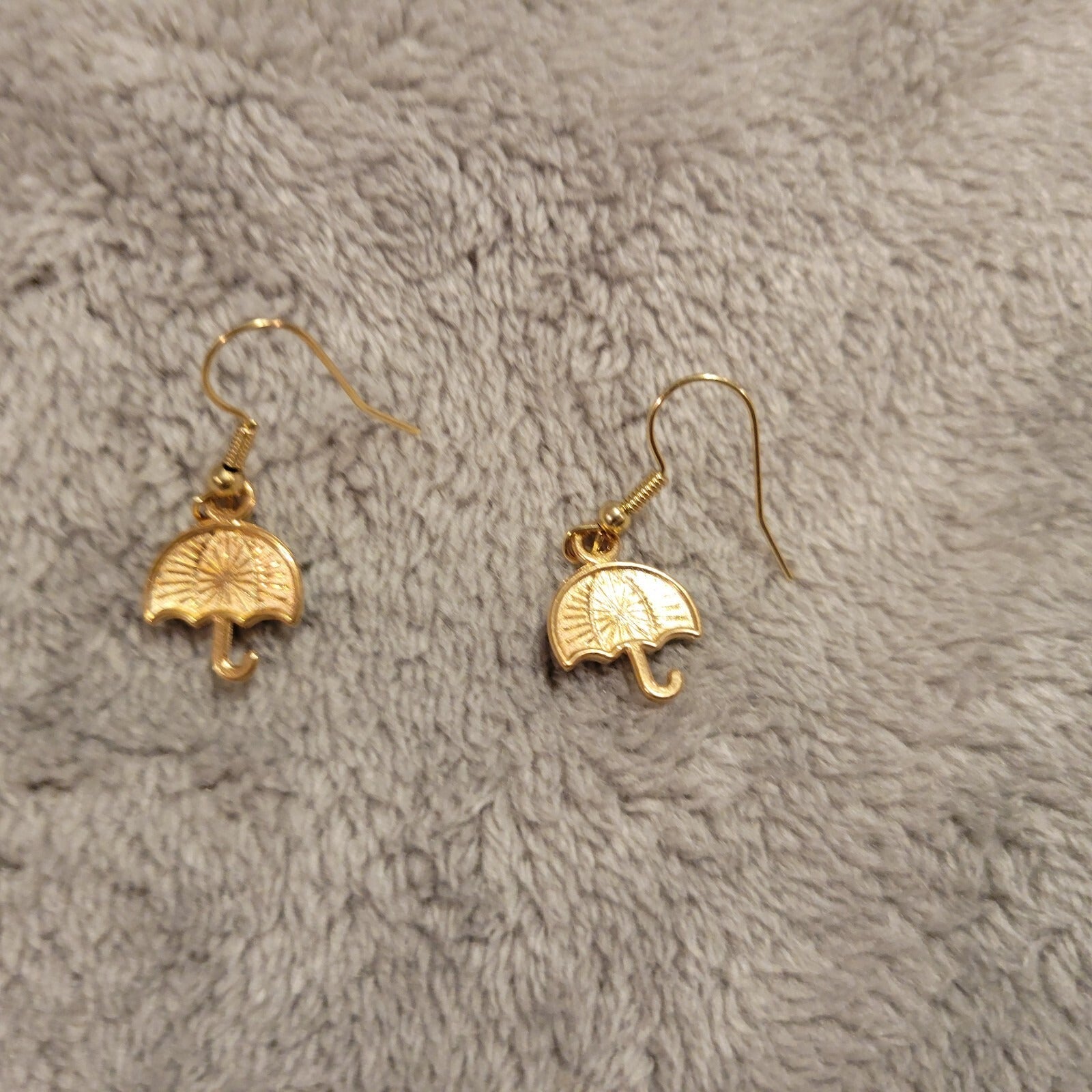 Umbrella #4 Womens Earrings One Pair Hanging Dangle Gold Tone Novelty Alloy