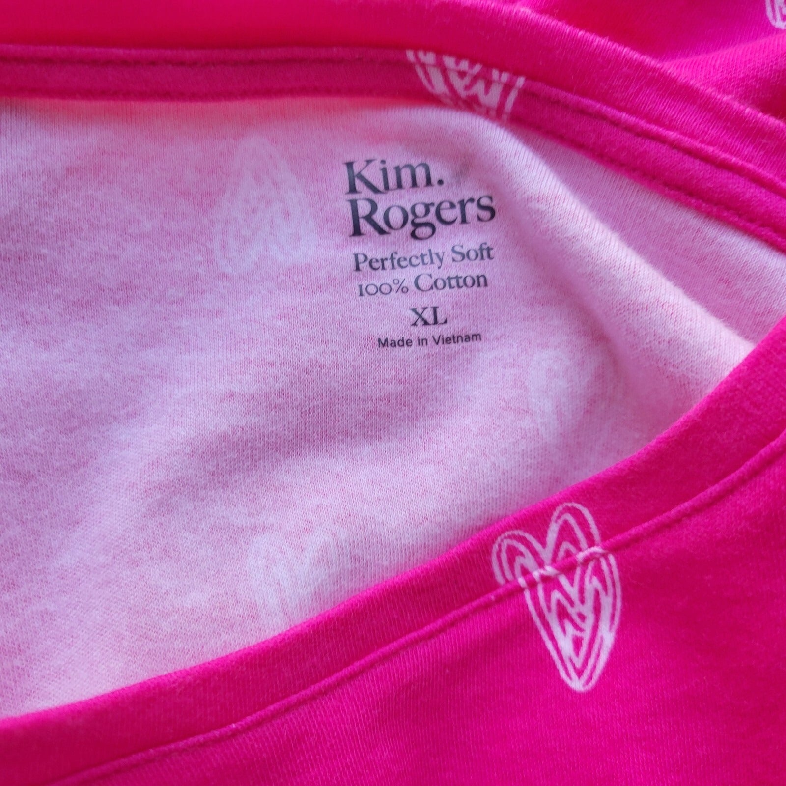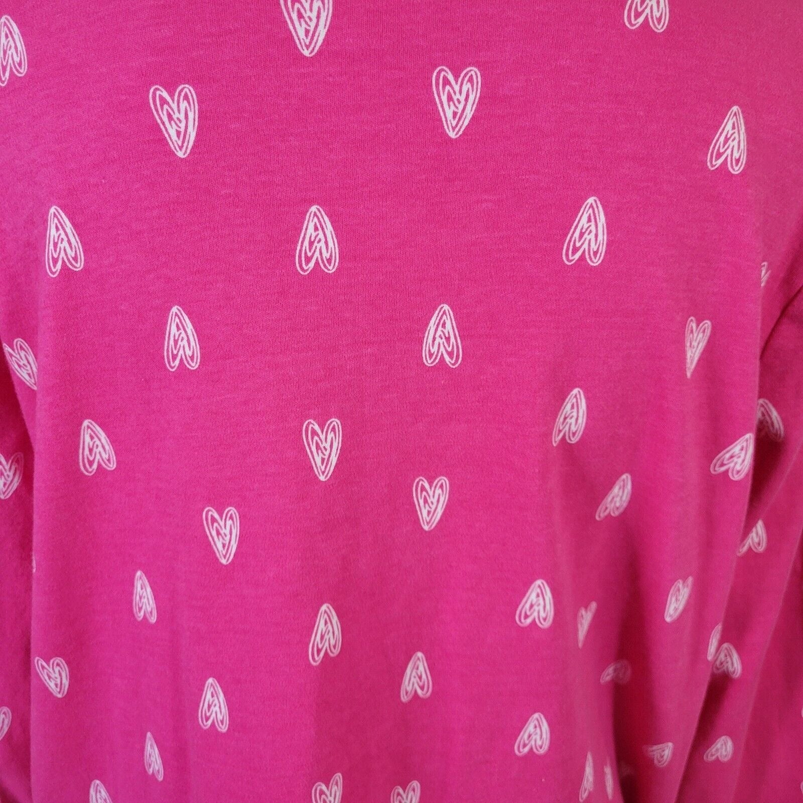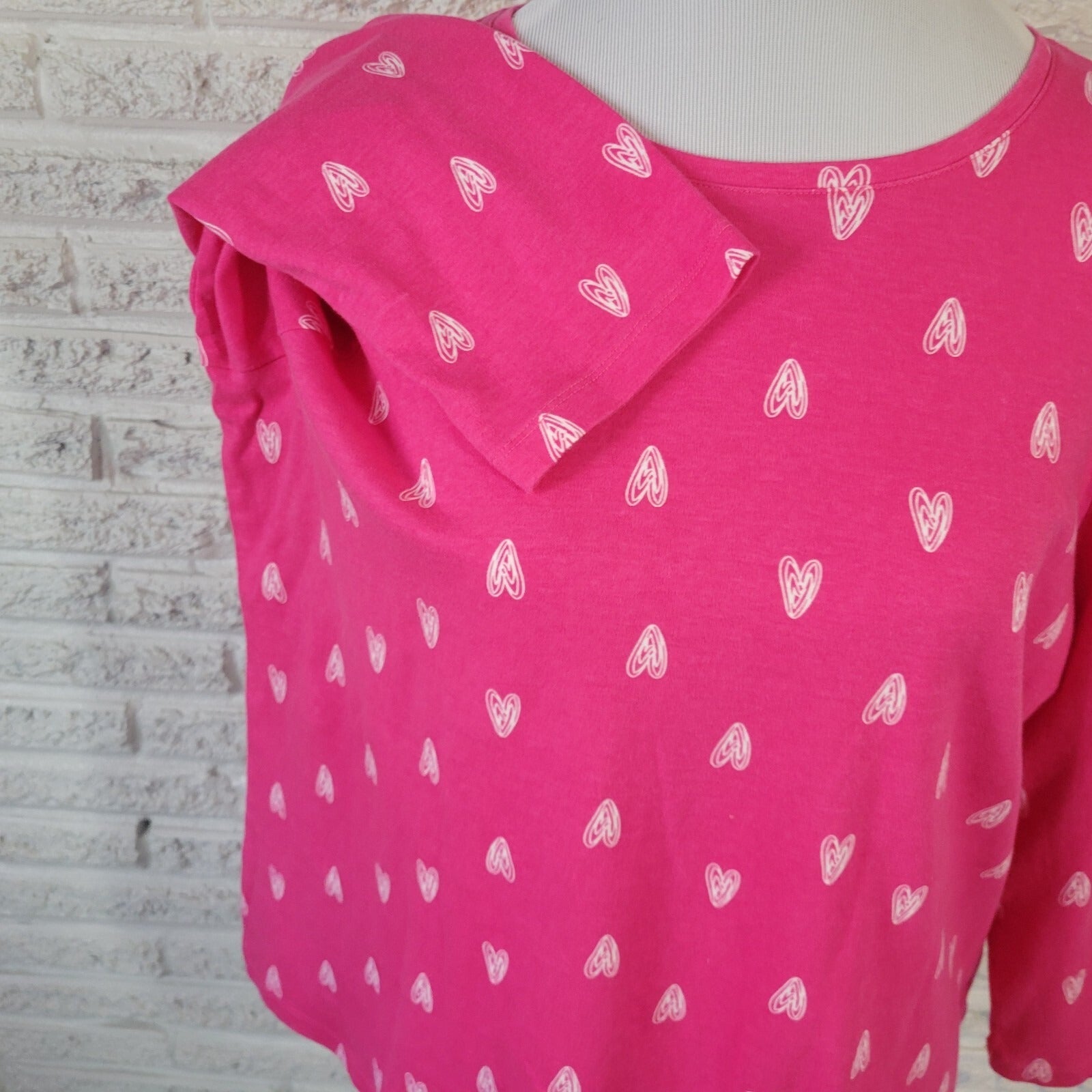 Valentines Day Kim Rogers Womens Top XL 3/4 Sleeve Cotton Pink Hearts All Over