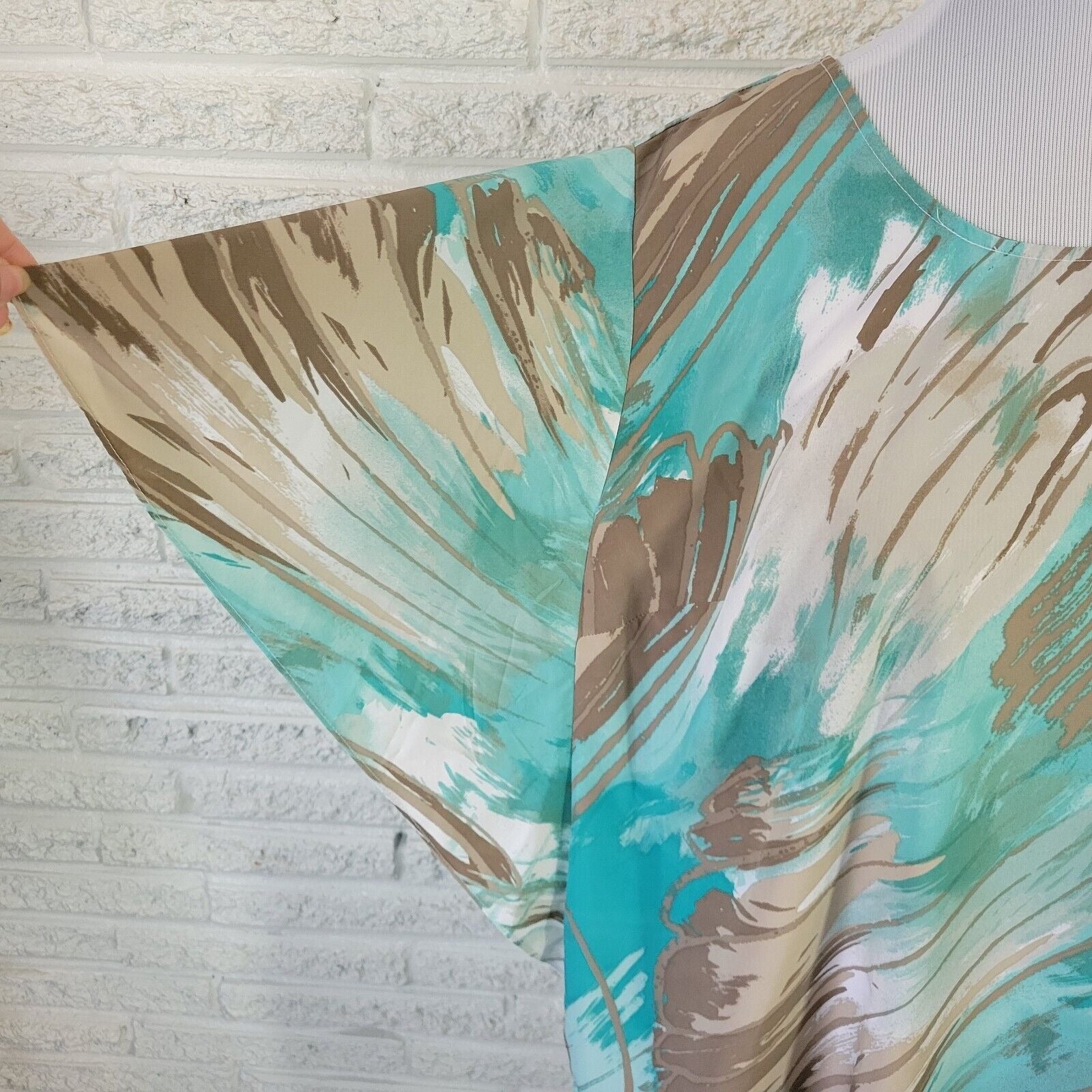 Elevate your everyday style with the Valerie Stevens Women's Top. This size 18 plus blouse features an elegant round neck and comfortable pullover closure, making it a breeze to wear for any casual or travel occasion. Its beautiful blue and gray watercolor design adds a touch of whimsy to your wardrobe, while the lightweight polyester material ensures you stay comfortable in all seasons. Expertly crafted with attention to detail, this blouse boasts batwing sleeves and a stylish basic fit that flatters the silhouette. This top is machine washable for your convenience. Add a versatile and chic piece to your collection with this must-have Valerie Stevens blouse.