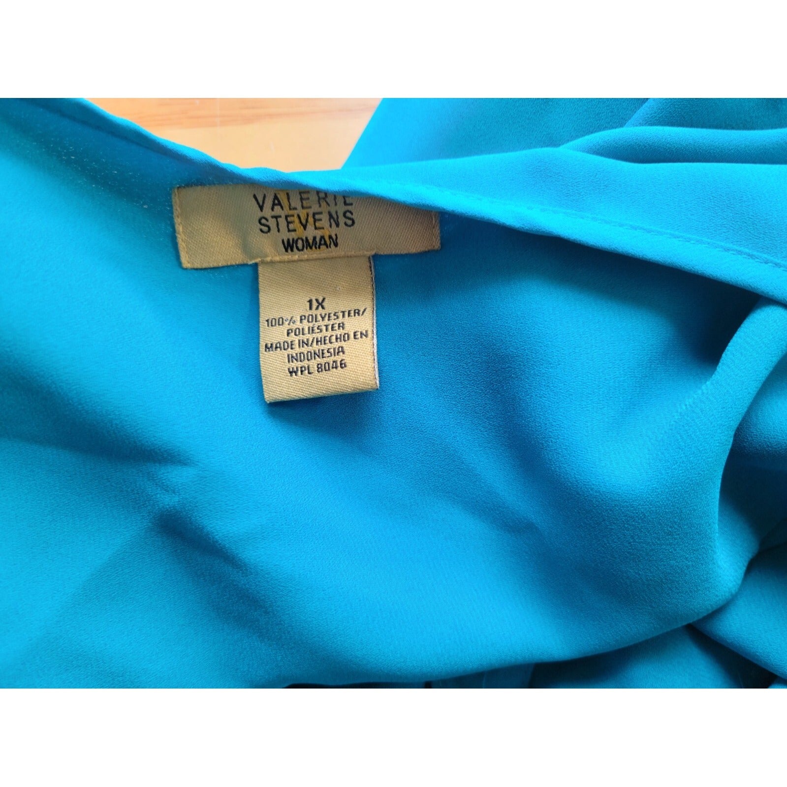 This Valerie Stevens women's top is perfect for any casual or business occasion. The collared neckline and button closure add a touch of sophistication, while the classic/fitted 3/4 sleeves keep it practical for any season. The solid blue color and regular fit make it a versatile addition to any wardrobe. Made from machine washable polyester, this top is both comfortable and easy to care for. It is available in size 1X and is suitable for plus-sized women. The ruched detailing adds a stylish touch to the basic style, making it a great choice for any occasion.