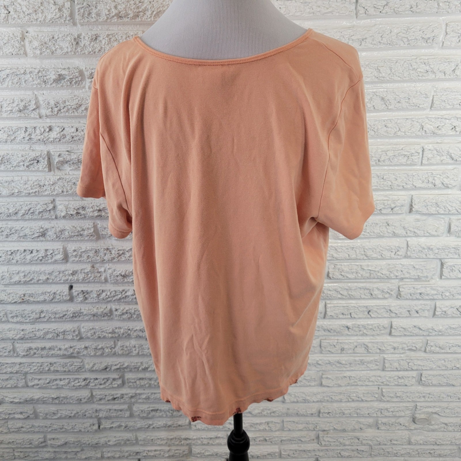Venezia Womens Top 18 20 Plus Short Sleeve Orange Floral Cotton Casual Comfy
