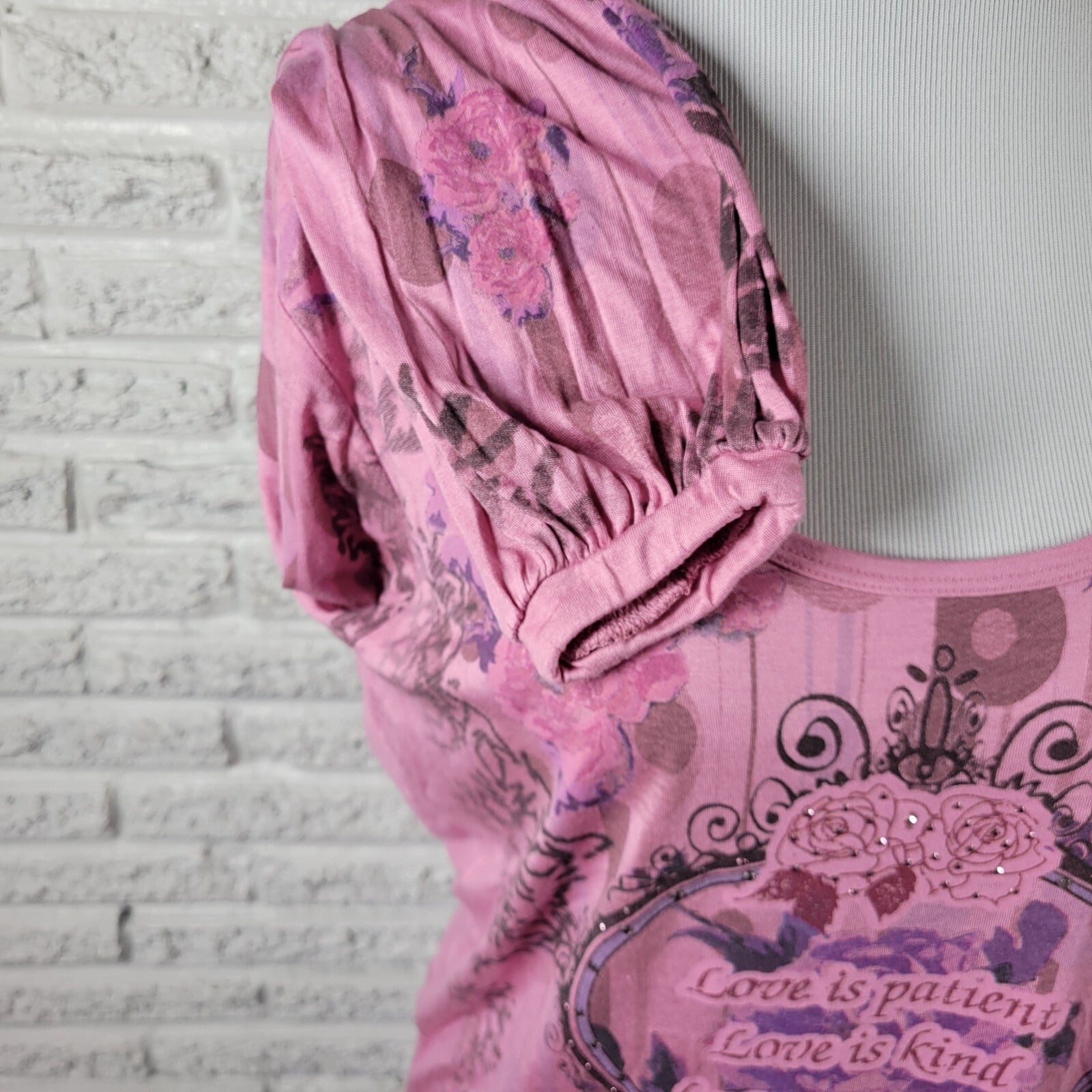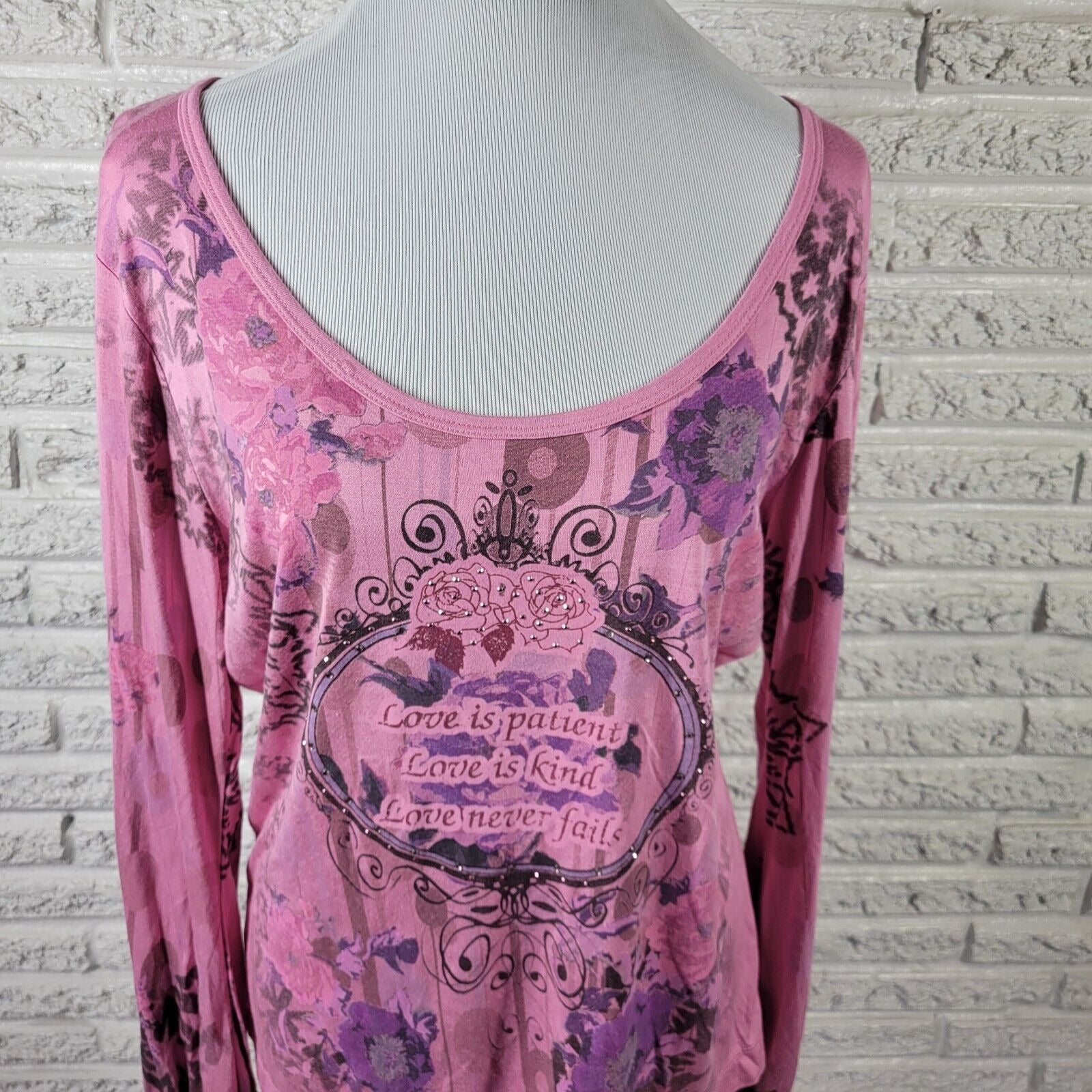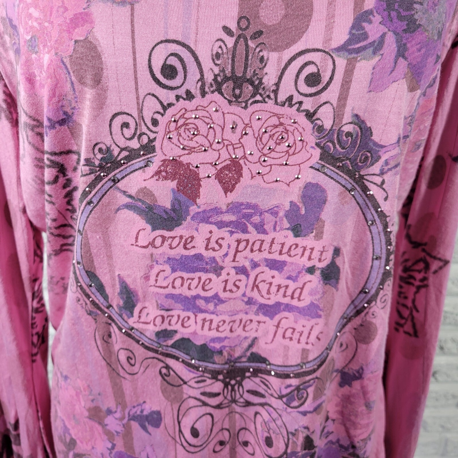 Vintage Suzie Womens Top Extra Large XL Pink Love Patient Kind Never Fails Studs