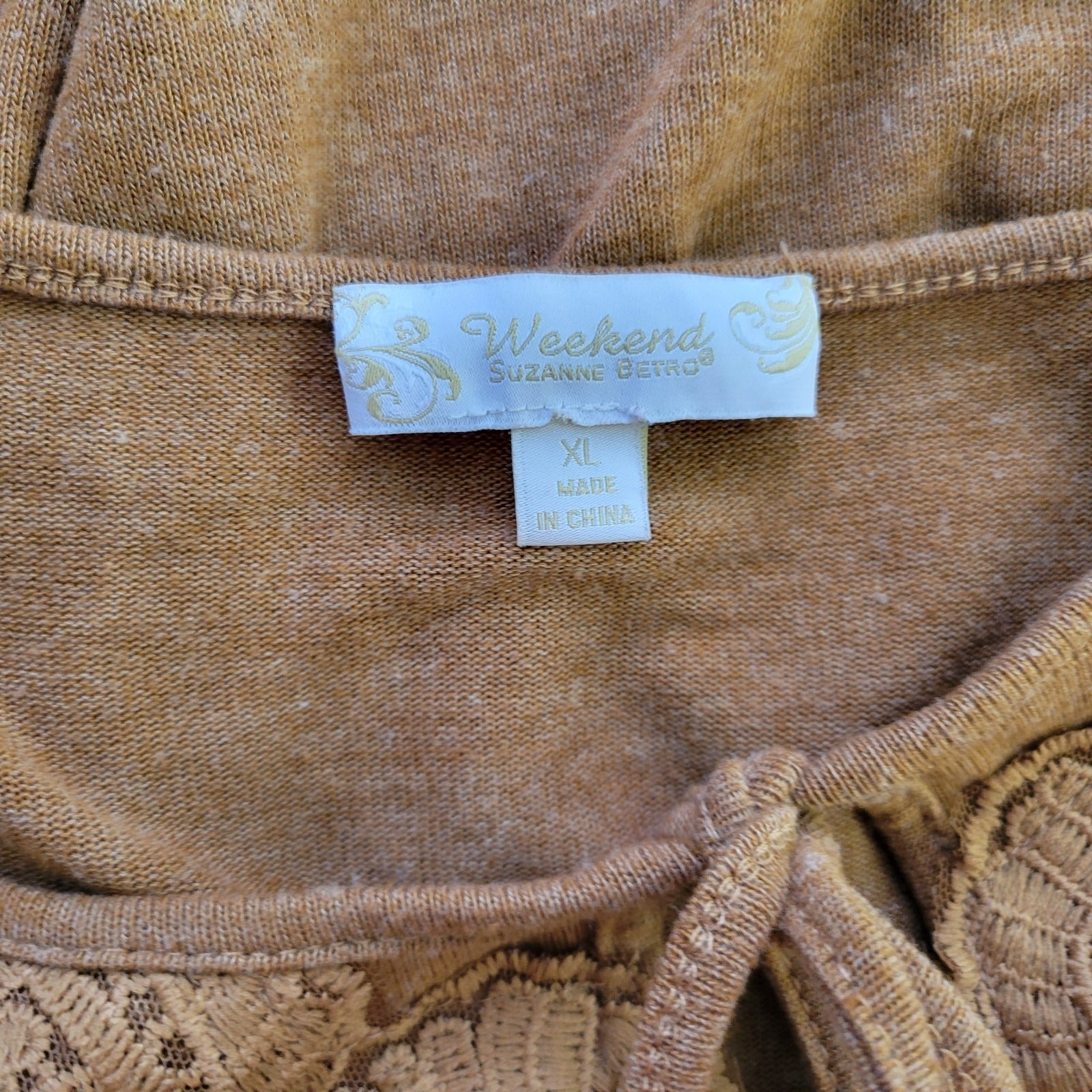 Weekends Suzanne Betro Womens Top XL Tunic Knit Double Bell Sleeve Brown Keyhole