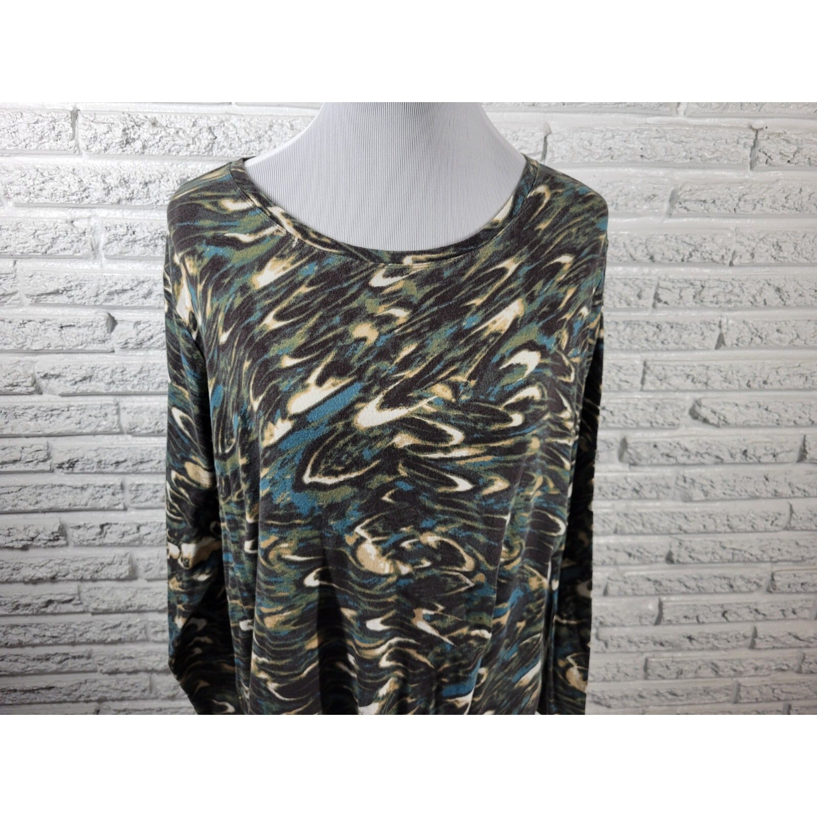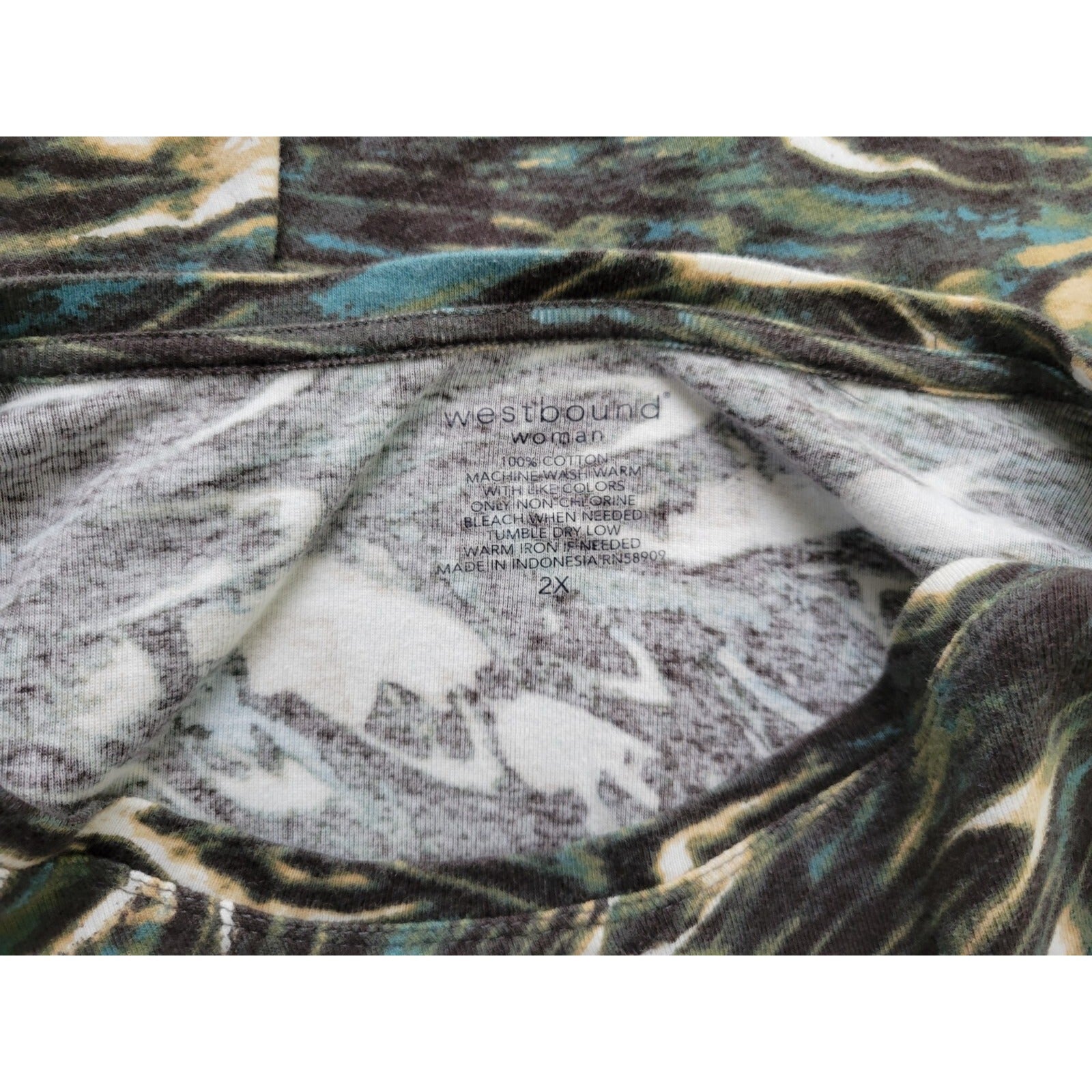 Westbound Womens Top 2X Plus Long Sleeve Green Watercolor Cotton Casual