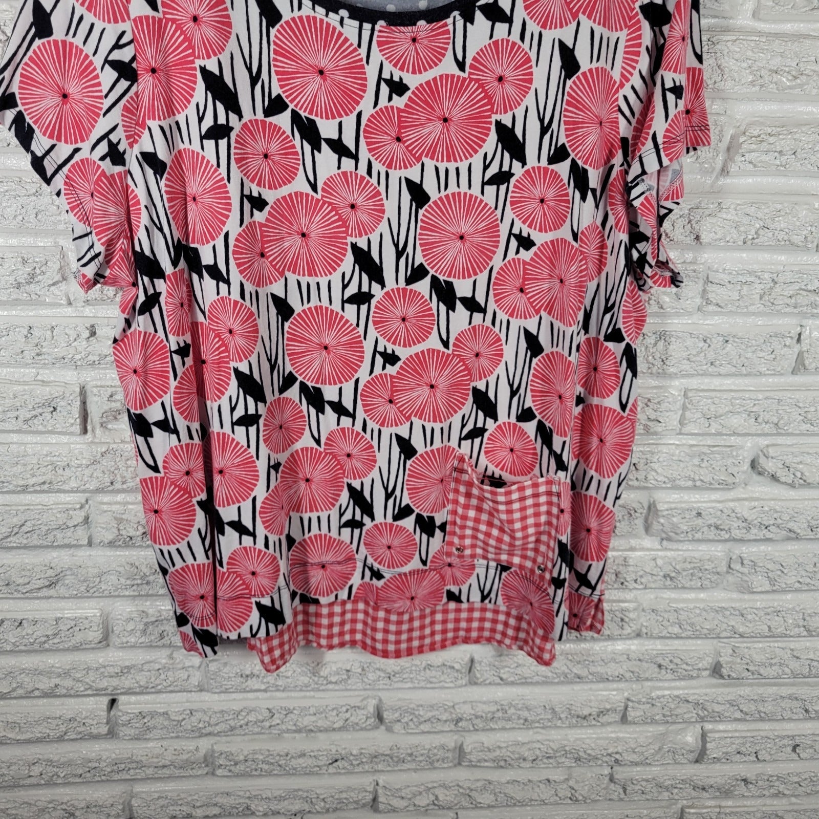 Westbound Womens Top 3X Plus Tee Cap Sleeve Red Geometric Cotton Blend Pocket