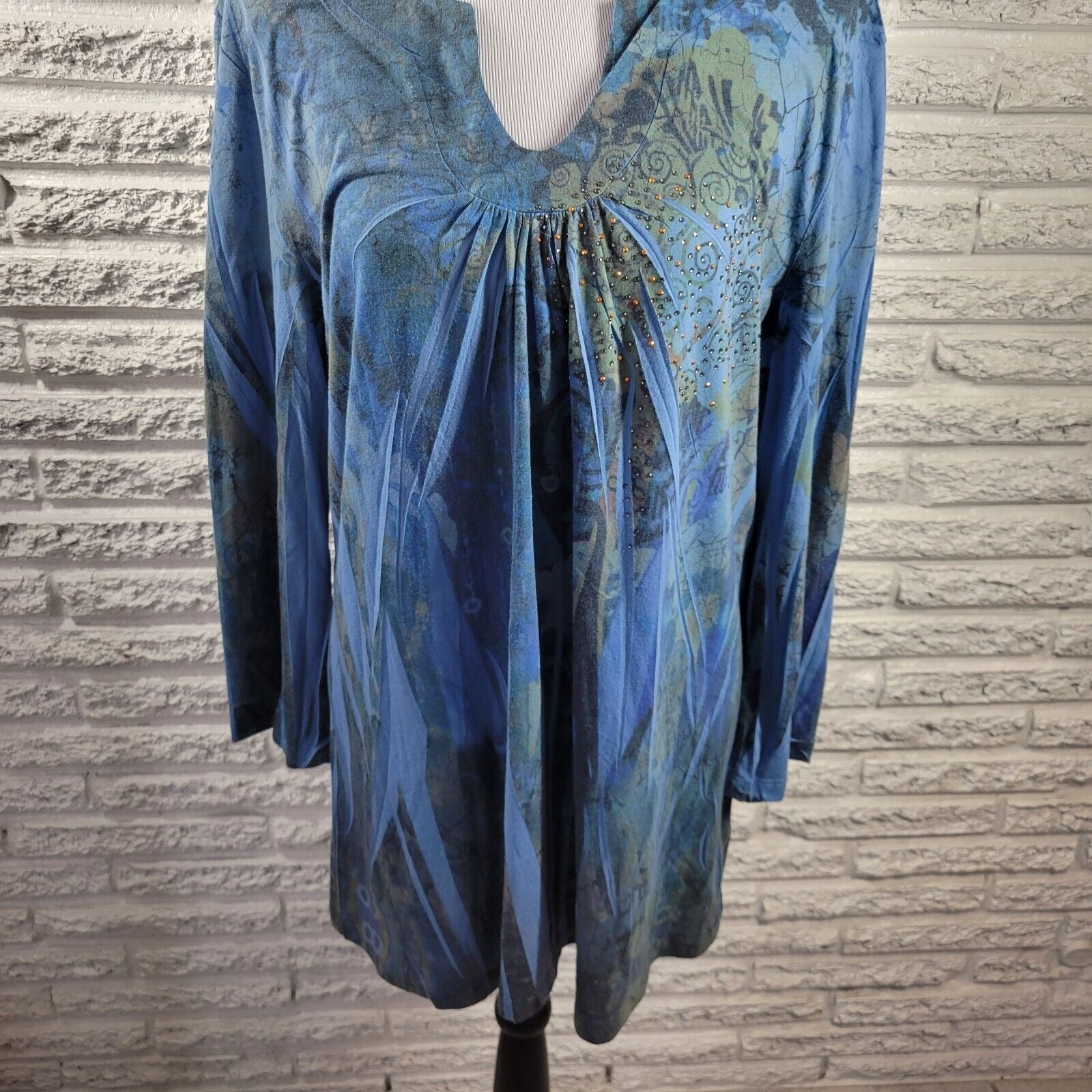 Westbound Womens Top Extra Large XL Tunic Blue Geometric Lightweight Studded