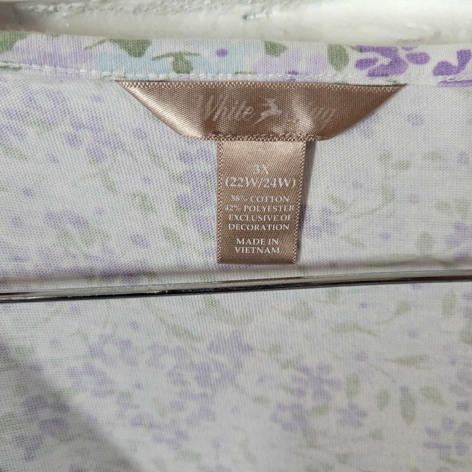 White Stag Womens Top 3X Plus Short Sleeve Cotton Blend Co Purple Floral Pleated