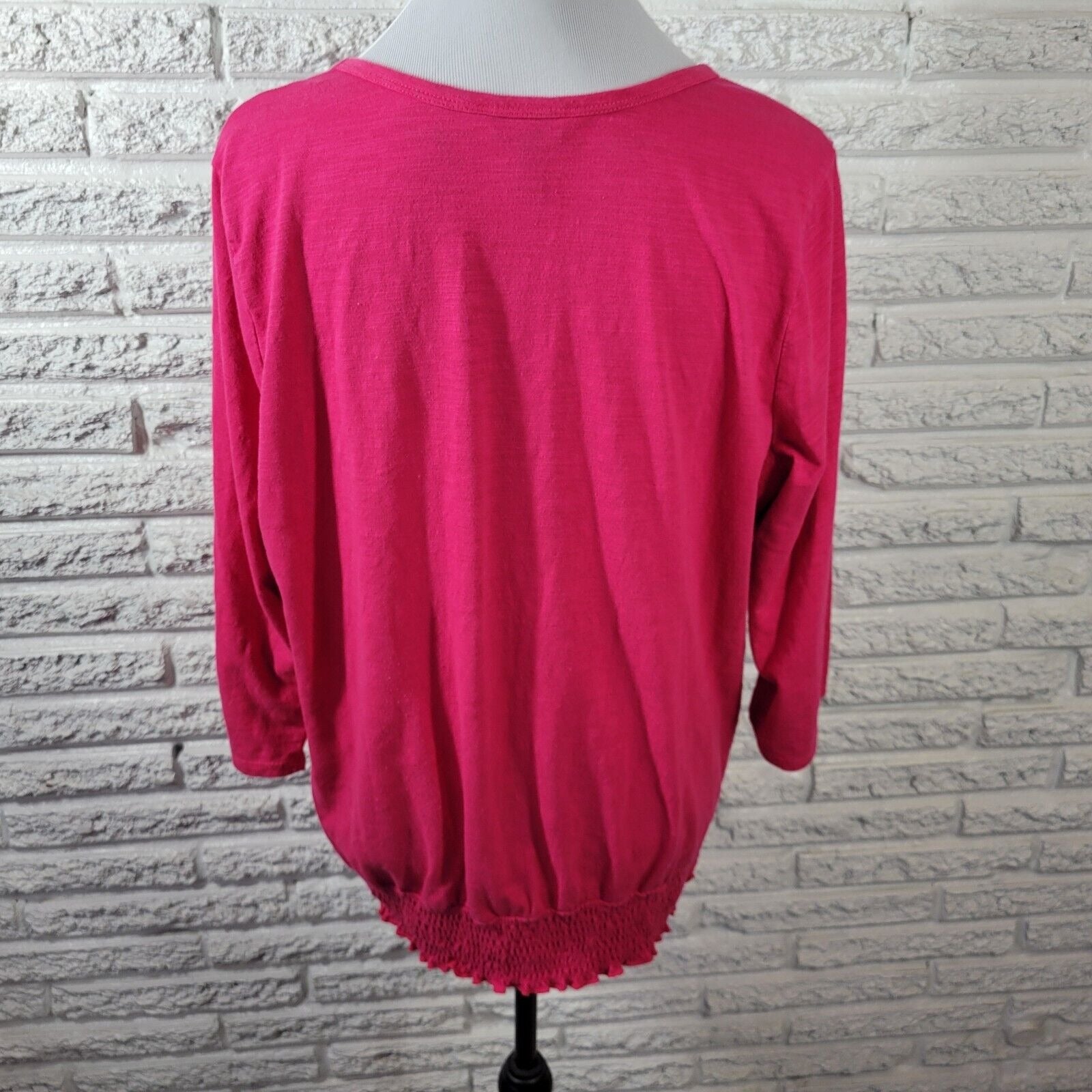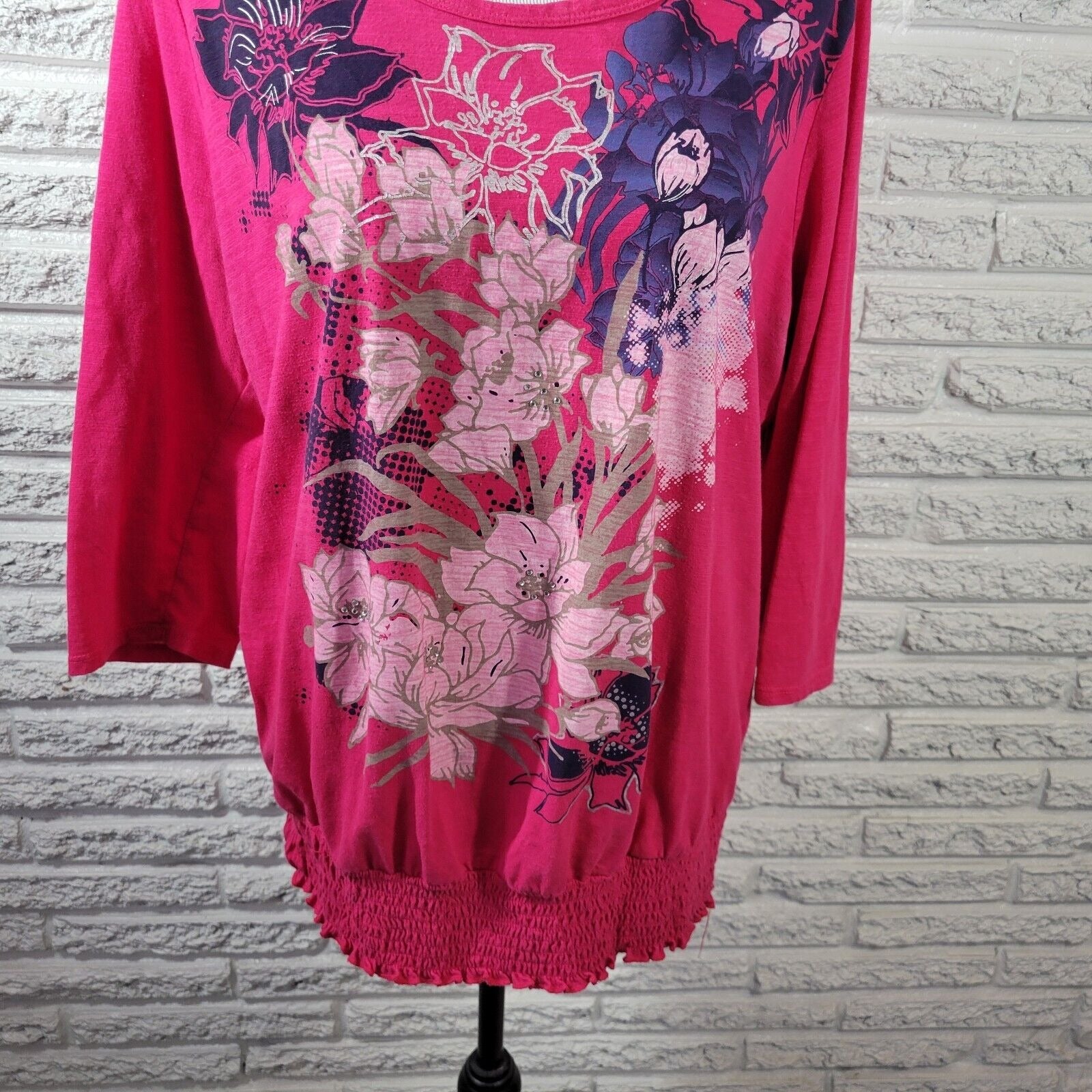 White Stag Womens Top XXL 20 Tee 3/4 Sleeve Smock Waist Pink Floral Rhinestones