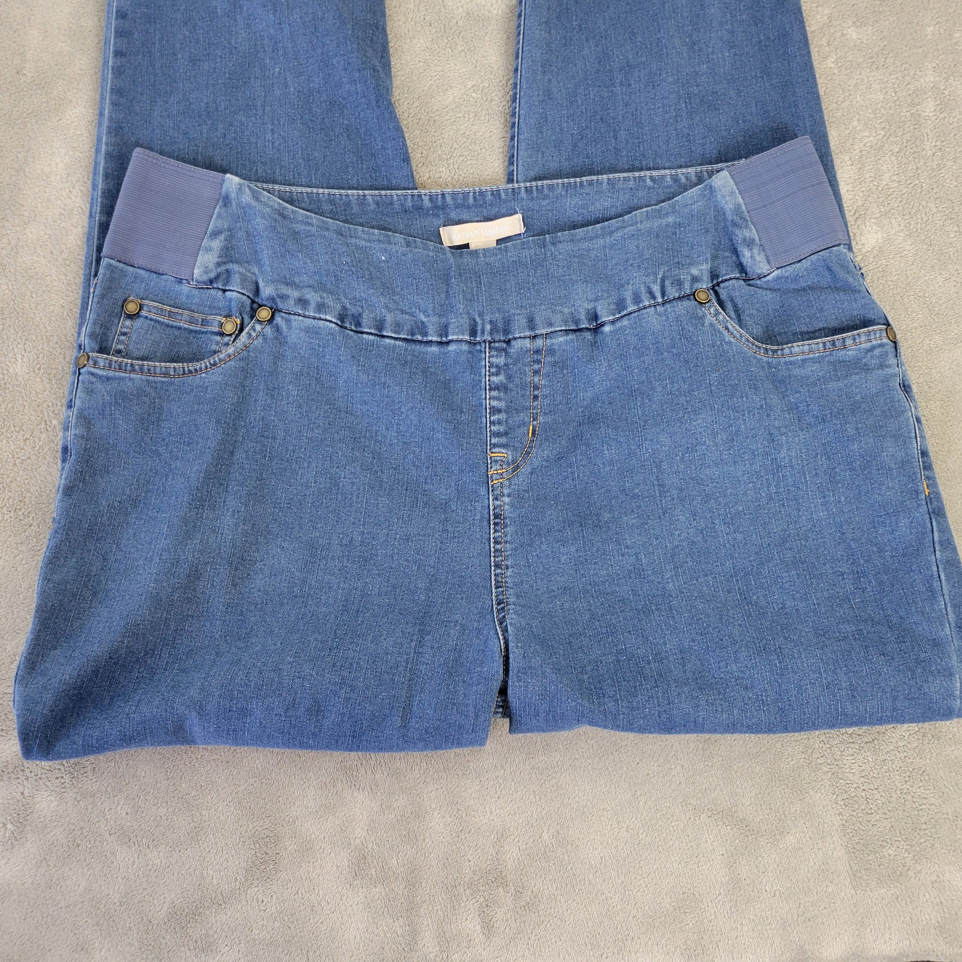 Woman Within Jeans 18W Plus Size Dark Blue Denim Pull-On Stretch Straight SL83E