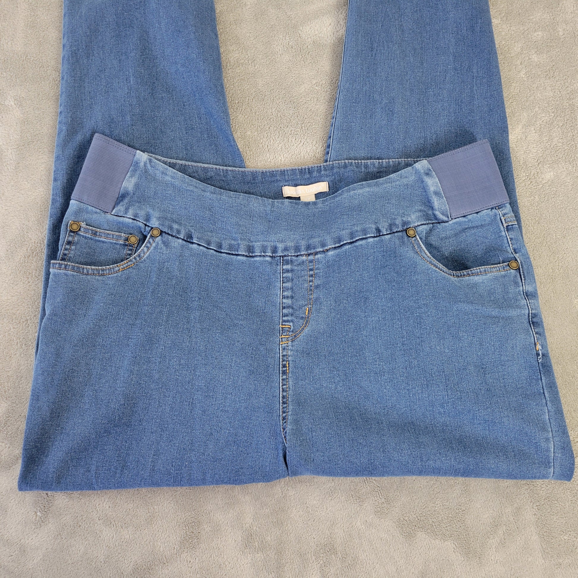 Woman Within Jeans 18W Plus Size Pull-On Straight Leg Medium Wash SL74E