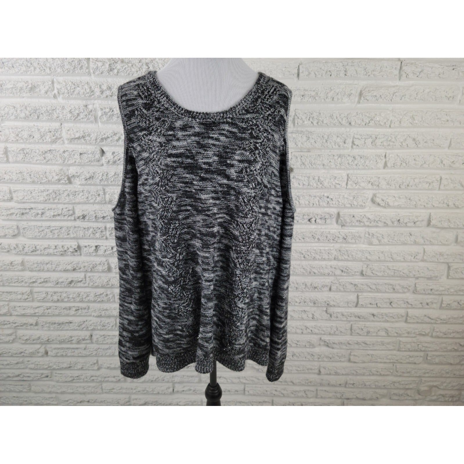 Woman Within Women Sweater 2X Plus Pullover Cold Shoulder Acrylic Black Marled