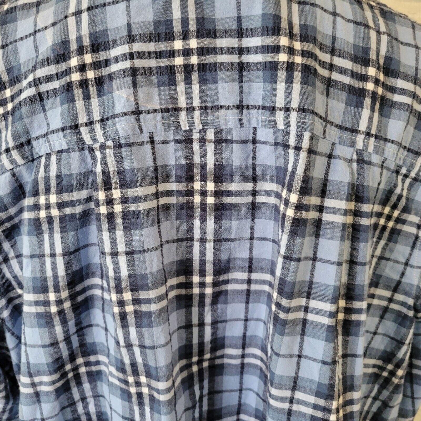Woman Within Women Top 1X 22 24 Short Sleeve Blue White Plaid Lightweight Cotton