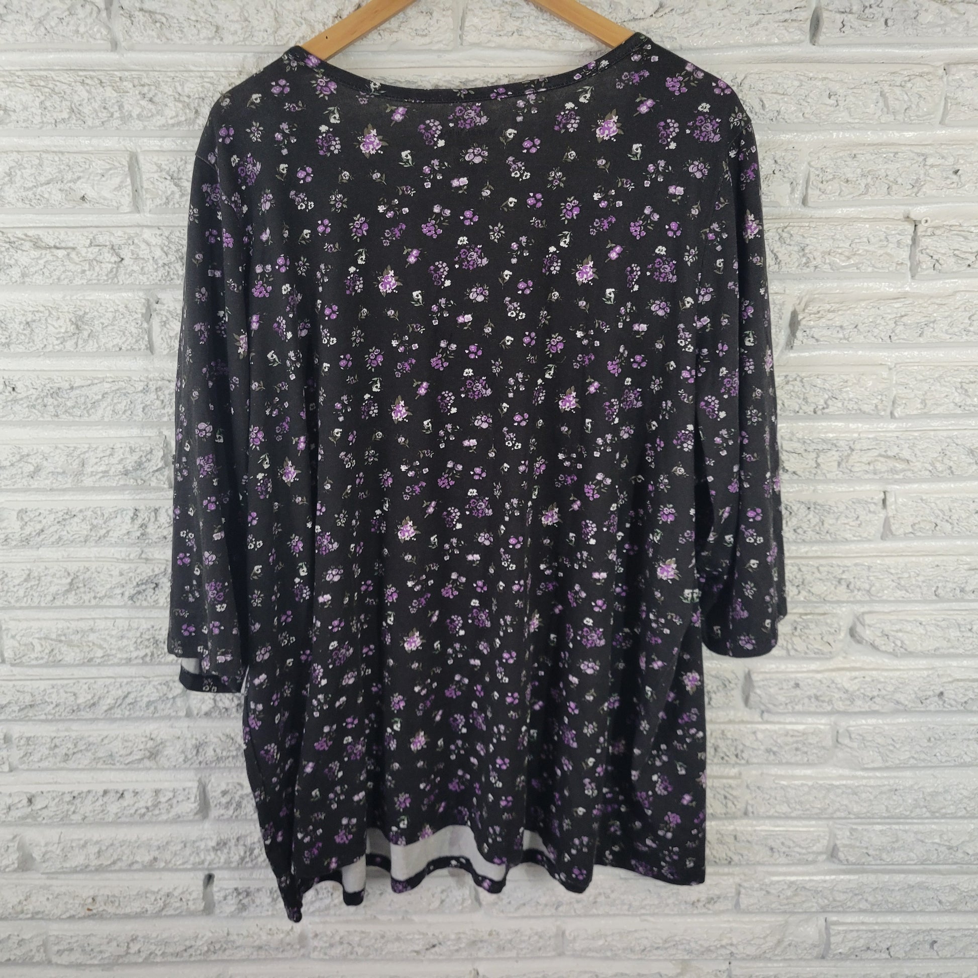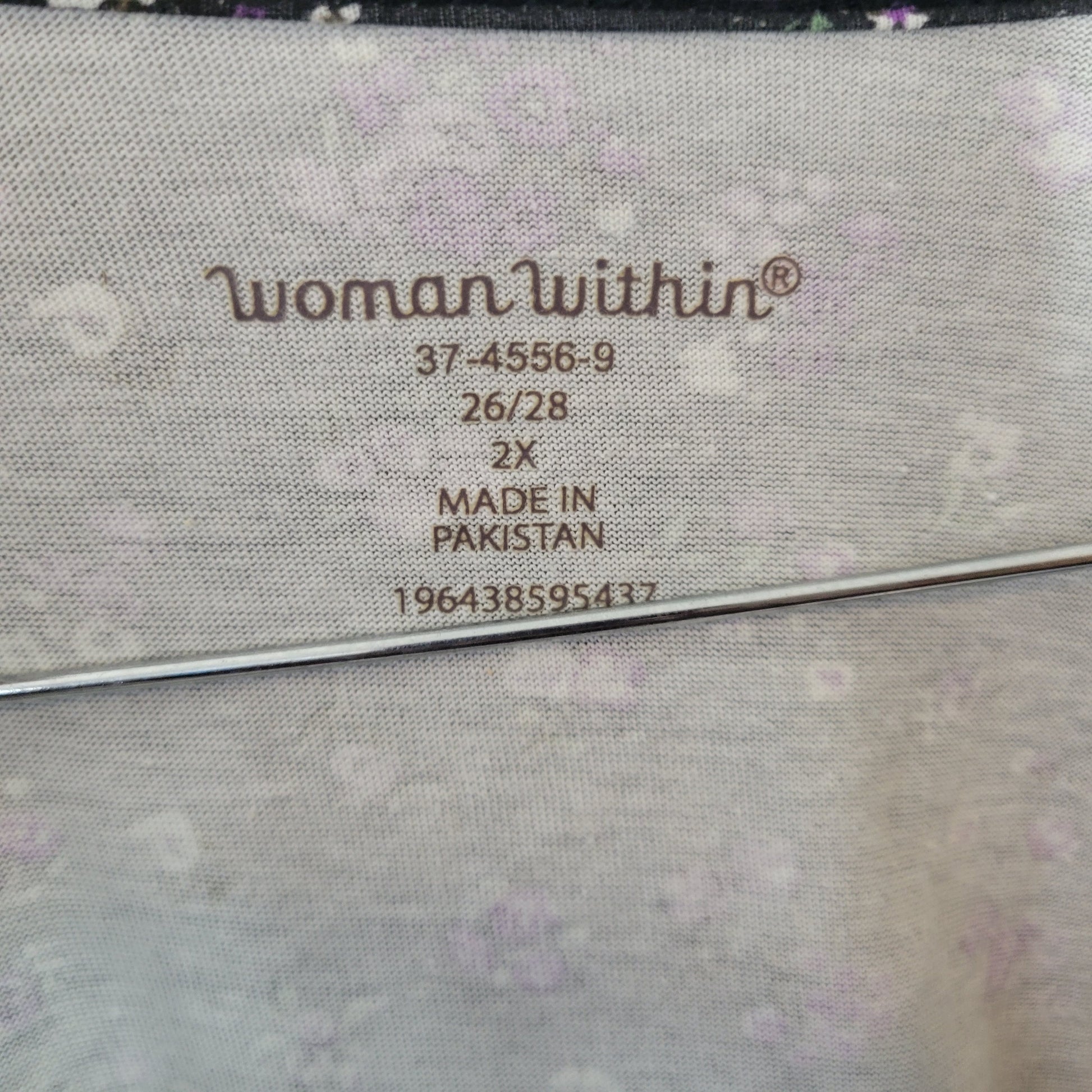 Woman Within Women's 2X Black Purple Floral Pintuck Pleated Tunic FLO63E