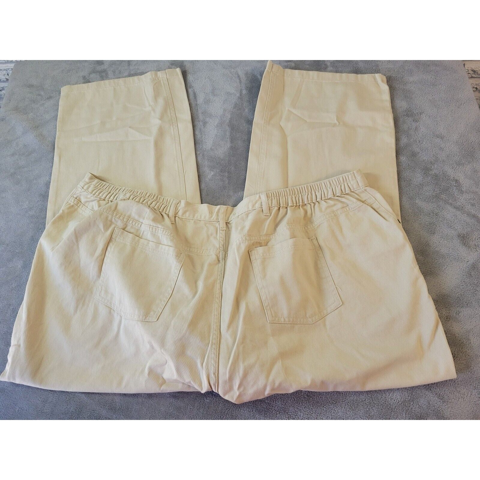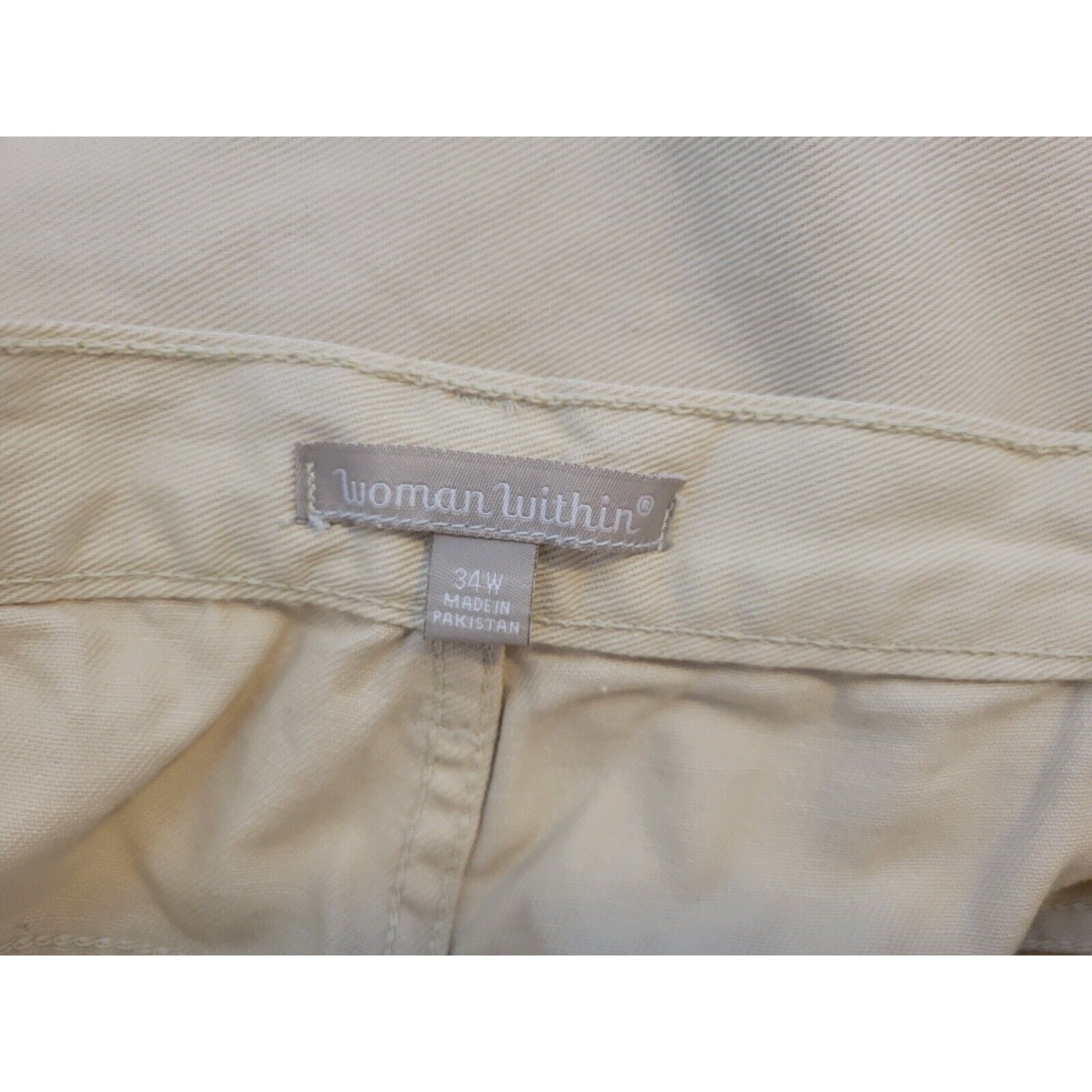 Woman Within Womens Jeans 34W Straight Leg Beige Cotton Elastic Waist Zip Fly
