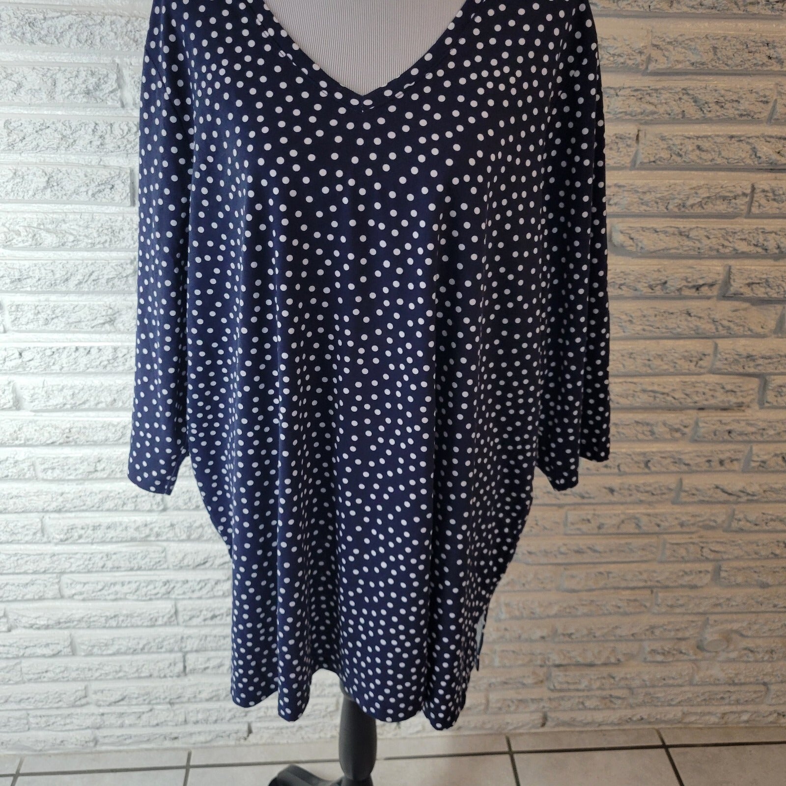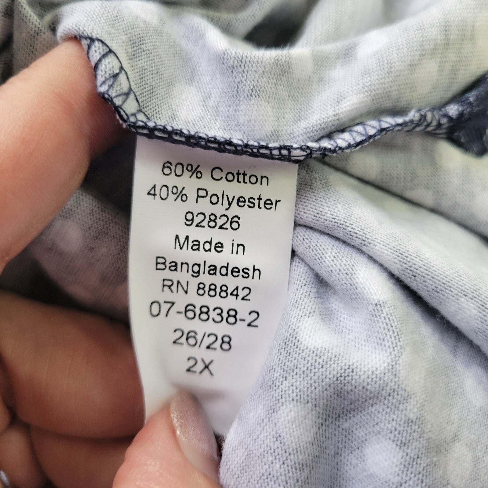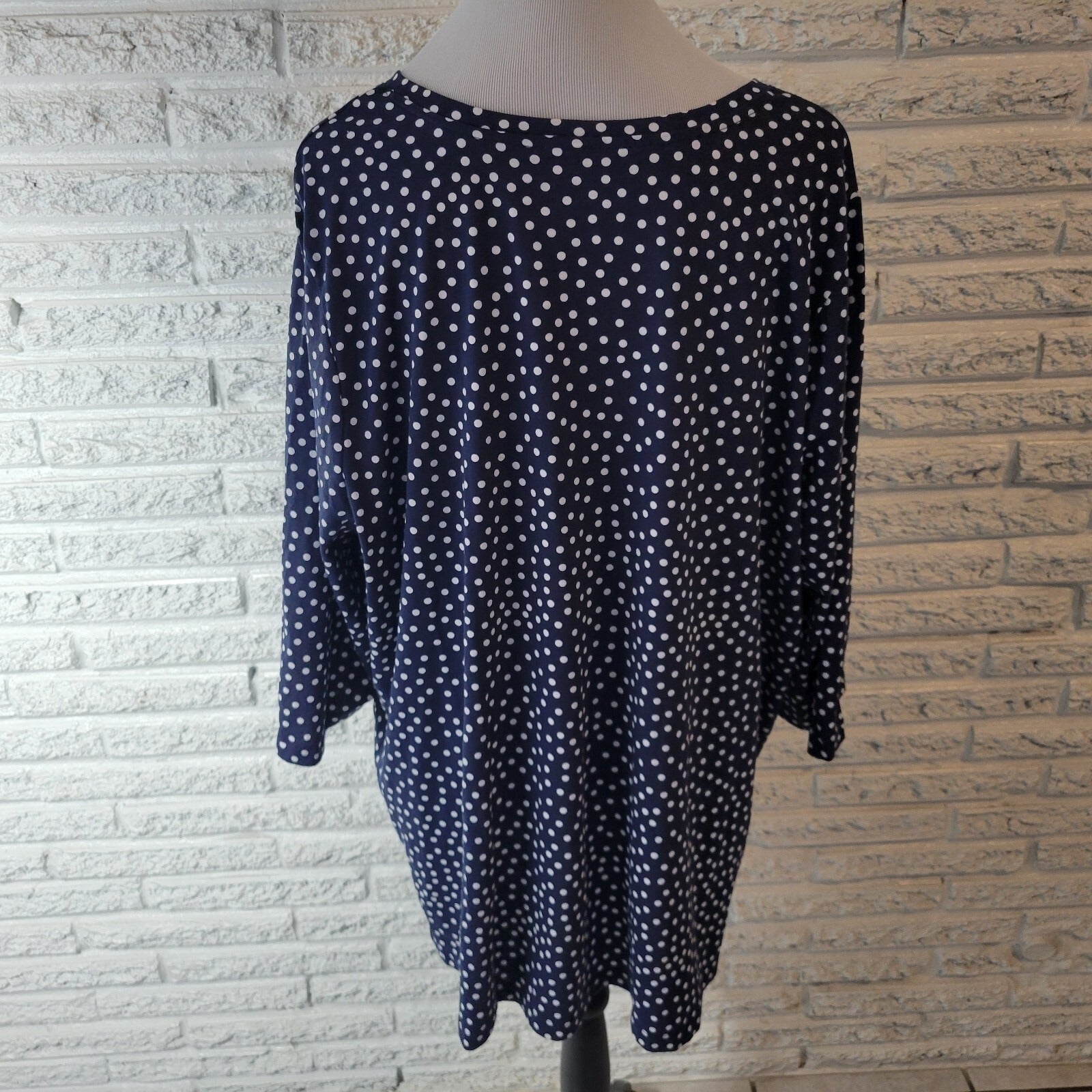 Woman Within Womens Top 2X 26 28 Plus 3/4 Sleeve Blue Polka Dot Cotton Blend