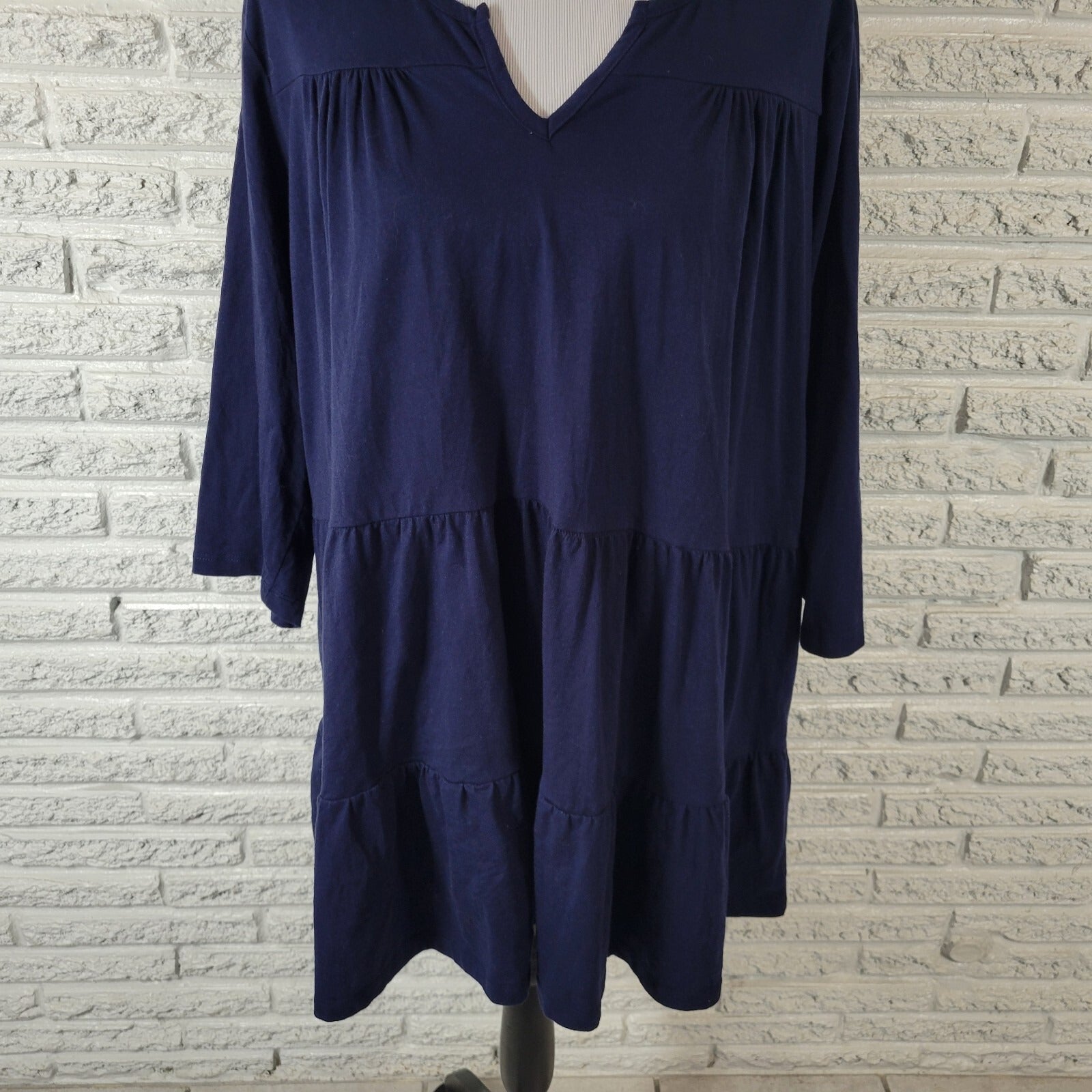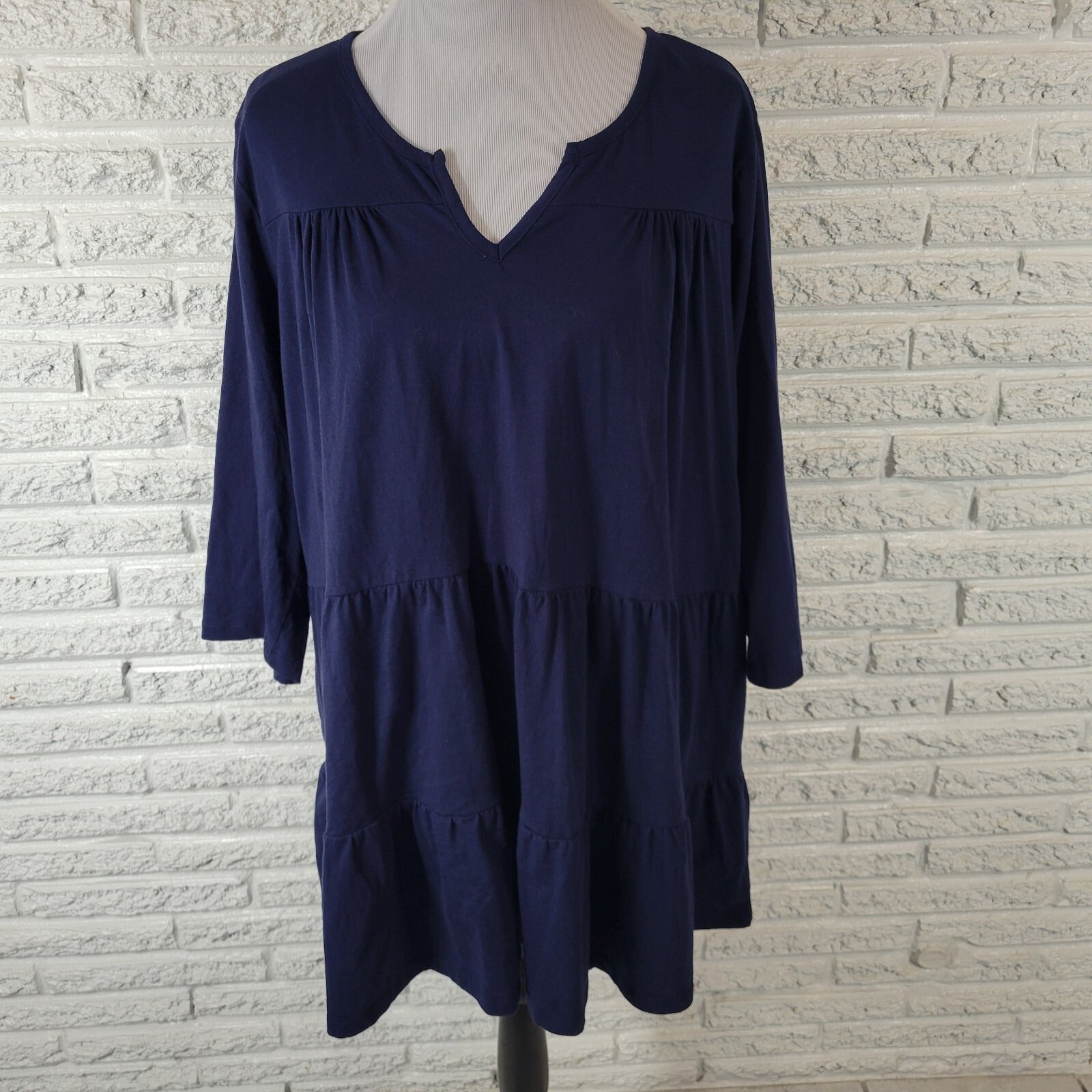 Woman Within Womens Top 2X Plus Tunic Baby Doll 3/4 Sleeve Blue Ruffle