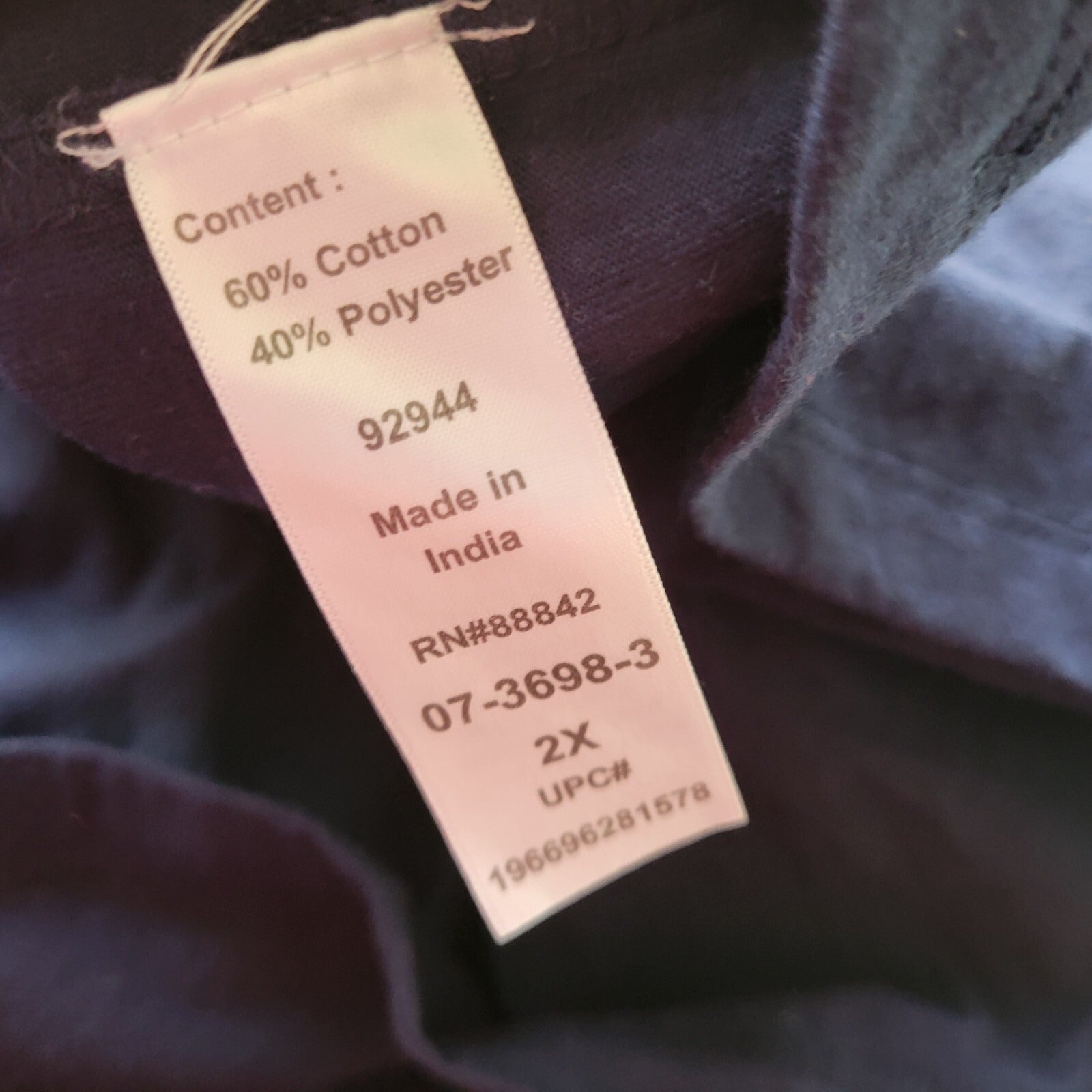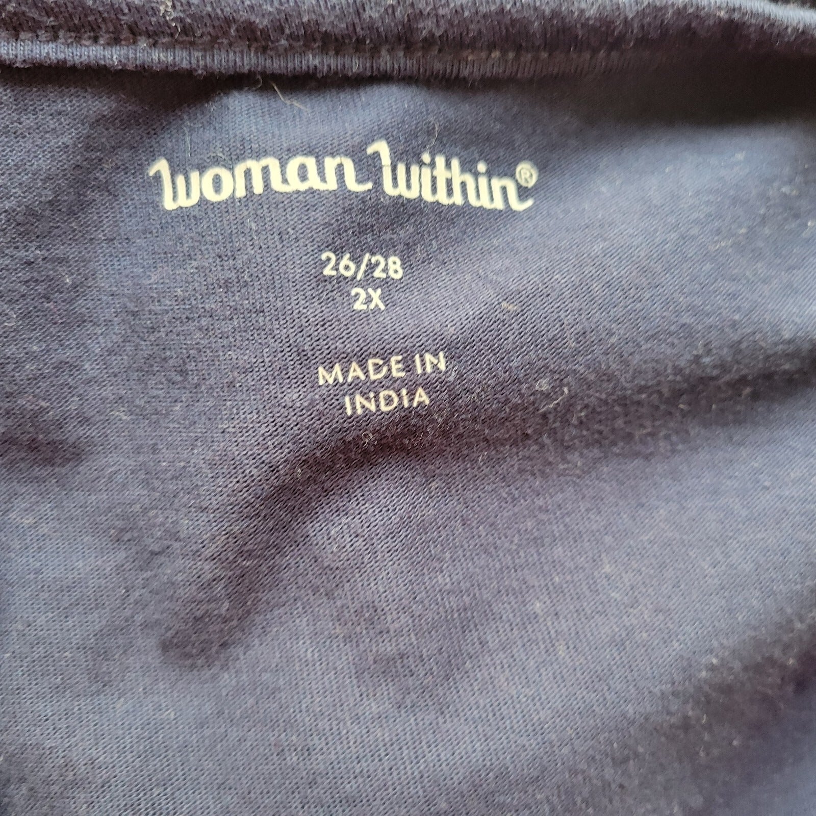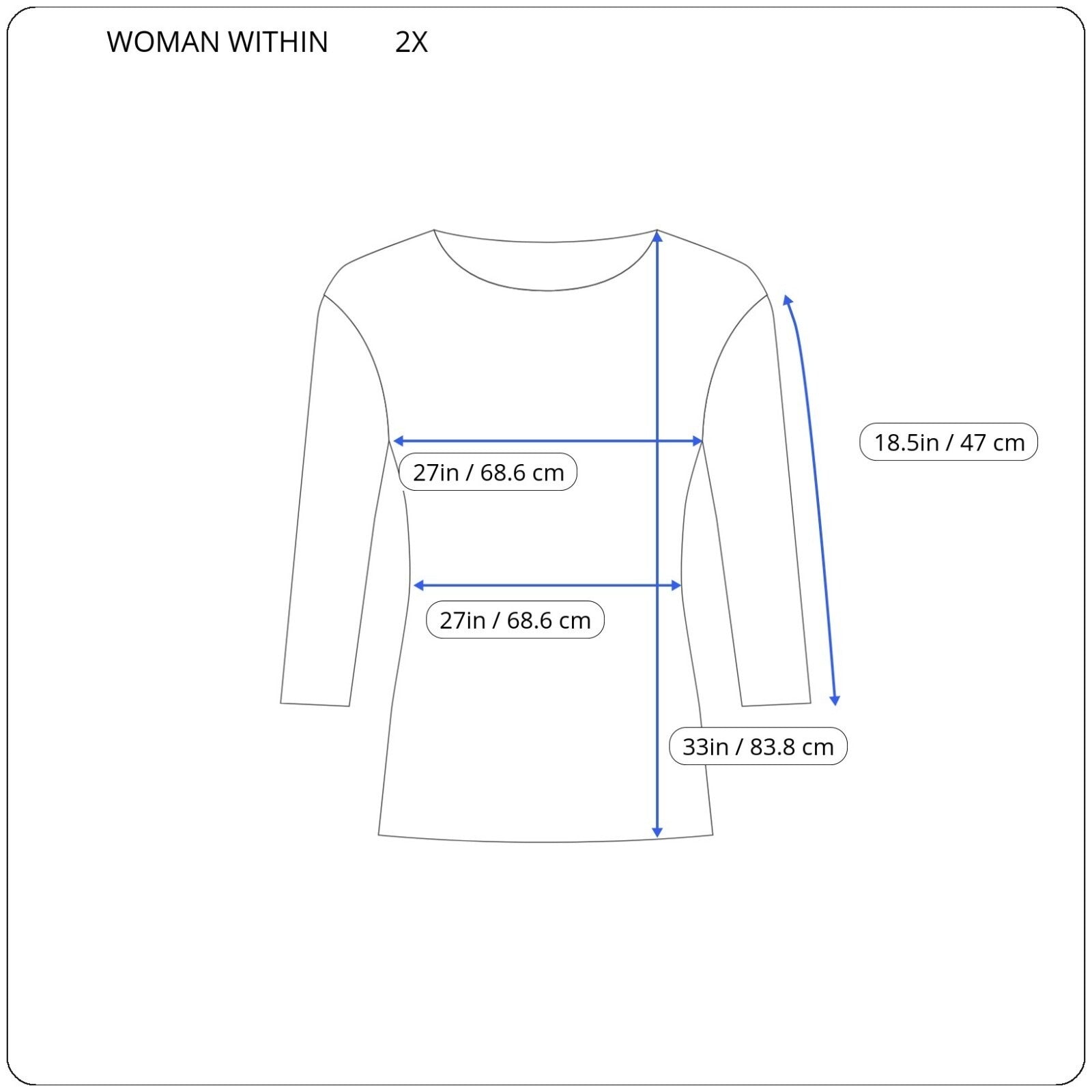 Elevate your wardrobe with the Woman Within Tunic Baby Doll Top. Designed for the woman who seeks both comfort and style, this size 2X blouse features a flattering V-neckline and casual 3/4 sleeves. The solid blue color is versatile, making it a perfect choice for any casual occasion or travel adventure. Crafted from a soft cotton blend, this tunic top is machine washable for easy care. It's adorned with a playful ruffle accent, adding a touch of femininity to the piece. With its stretch fabric and all-season weight, it's a comfortable and fashionable addition to your collection.