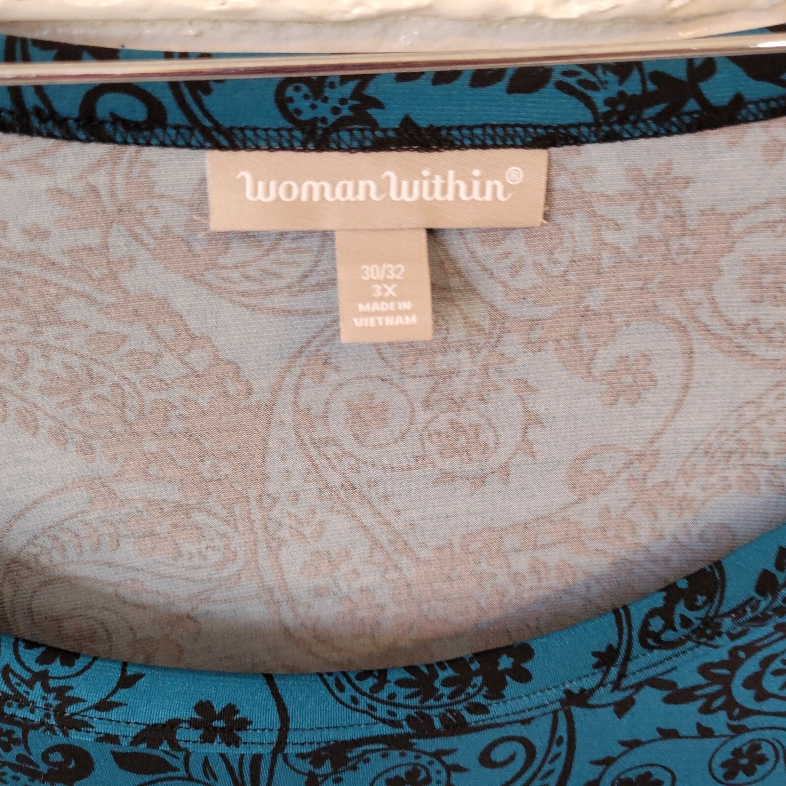 Woman Within Womens Top 3X Tunic 3/4 Sleeve Blue PaisleyPoly Blend Asymmetric