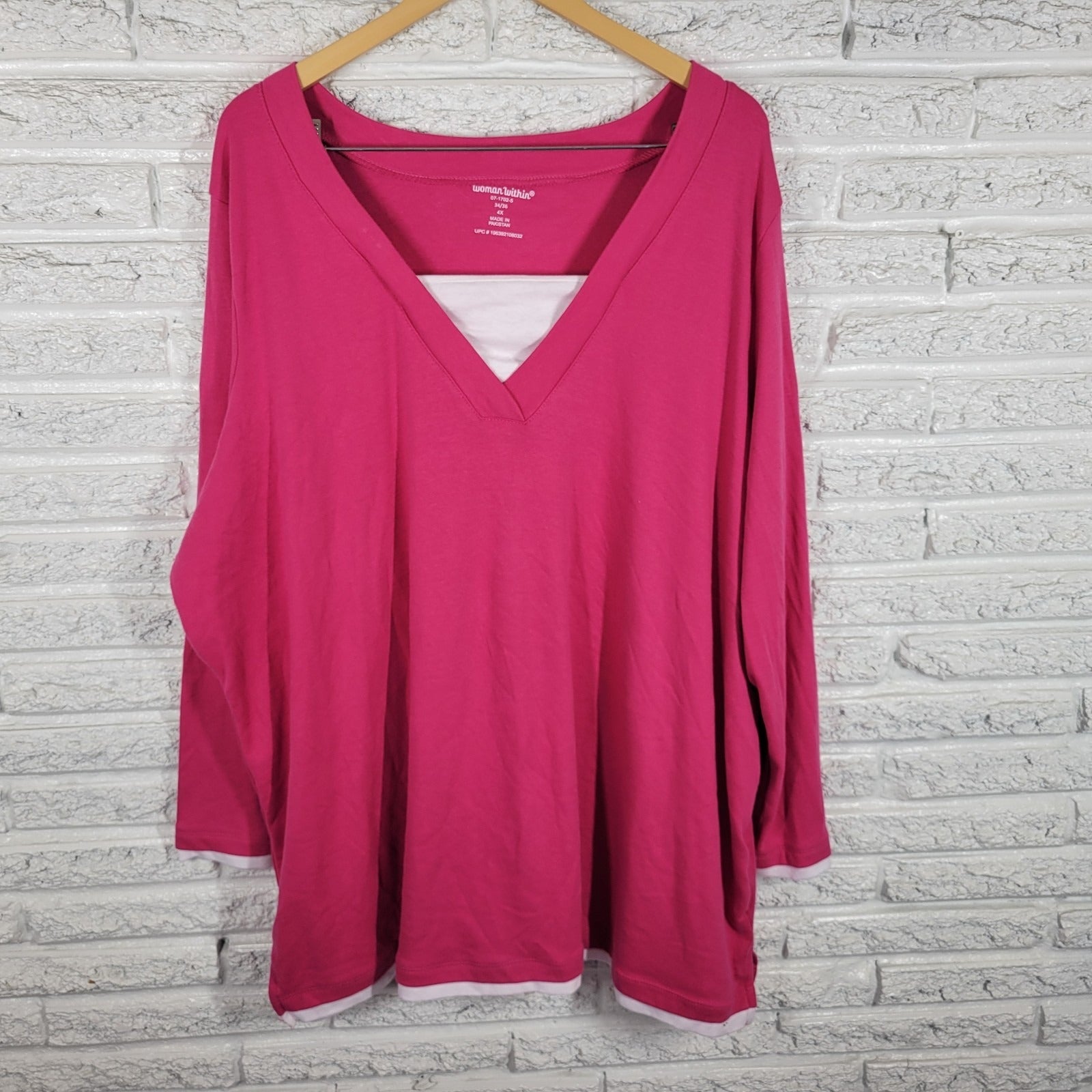 Women Within Womens Top 4X Plus Tunic Long Sleeve Pink Square Neck Casual Comfy