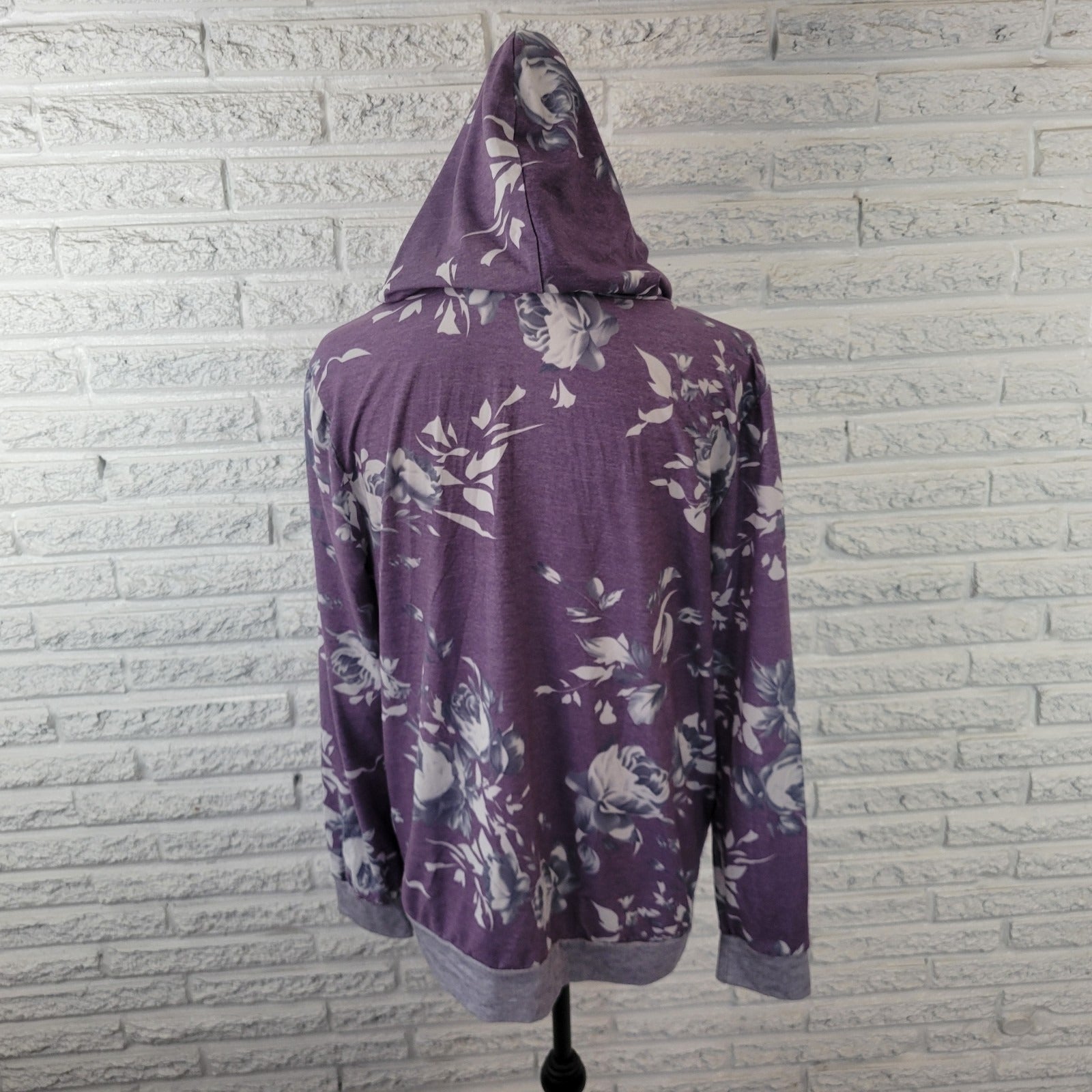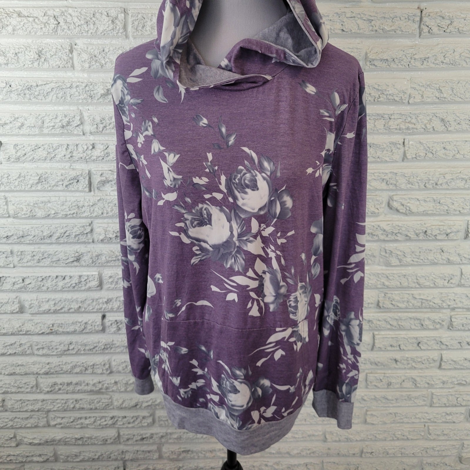 Womens Top Extra Large XL Tee Hoodie Lavender Floral Pockets Poly Blend Casual