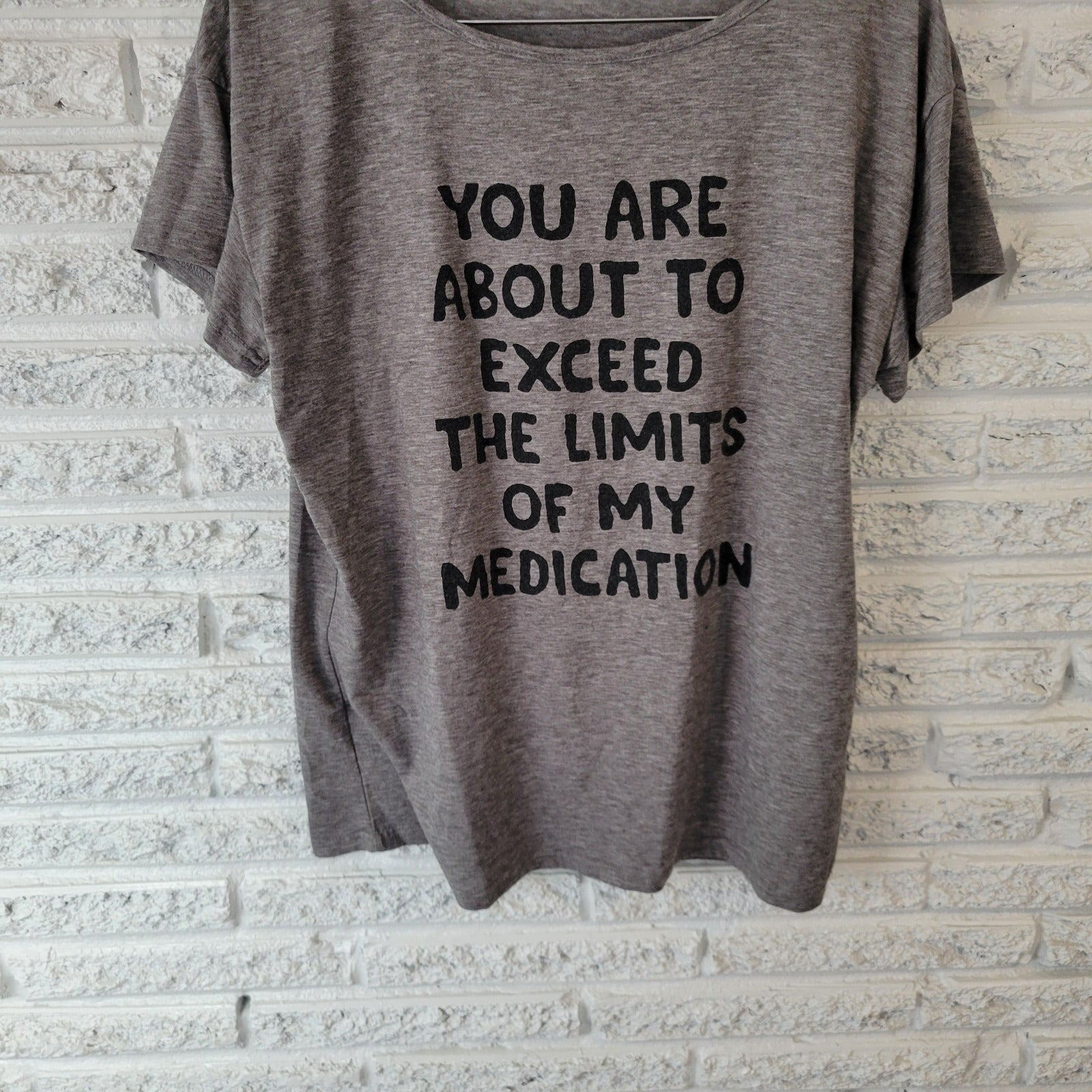 Womens Top Extra Large XL Tee Short Sleeve Gray Limits of My Medication Funny