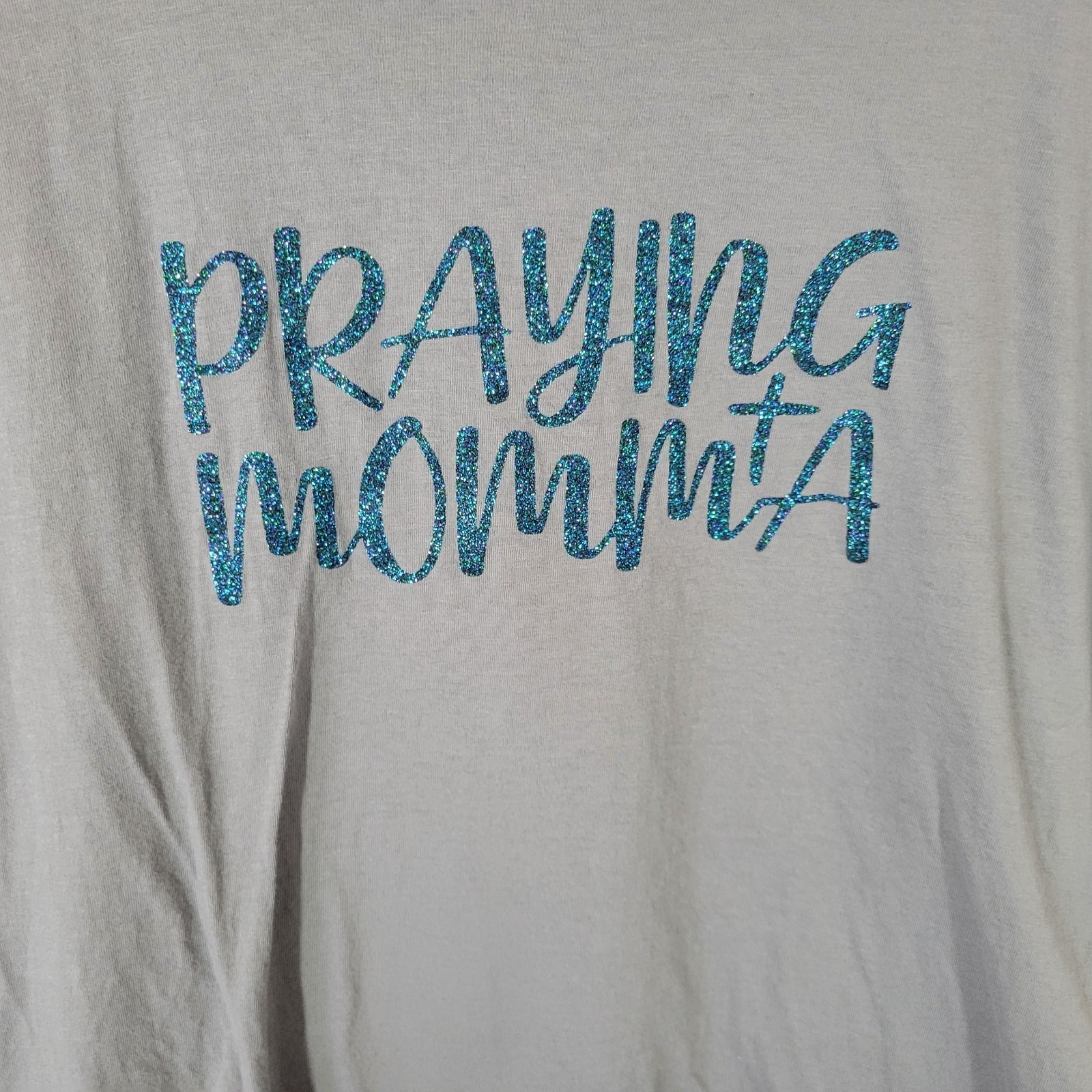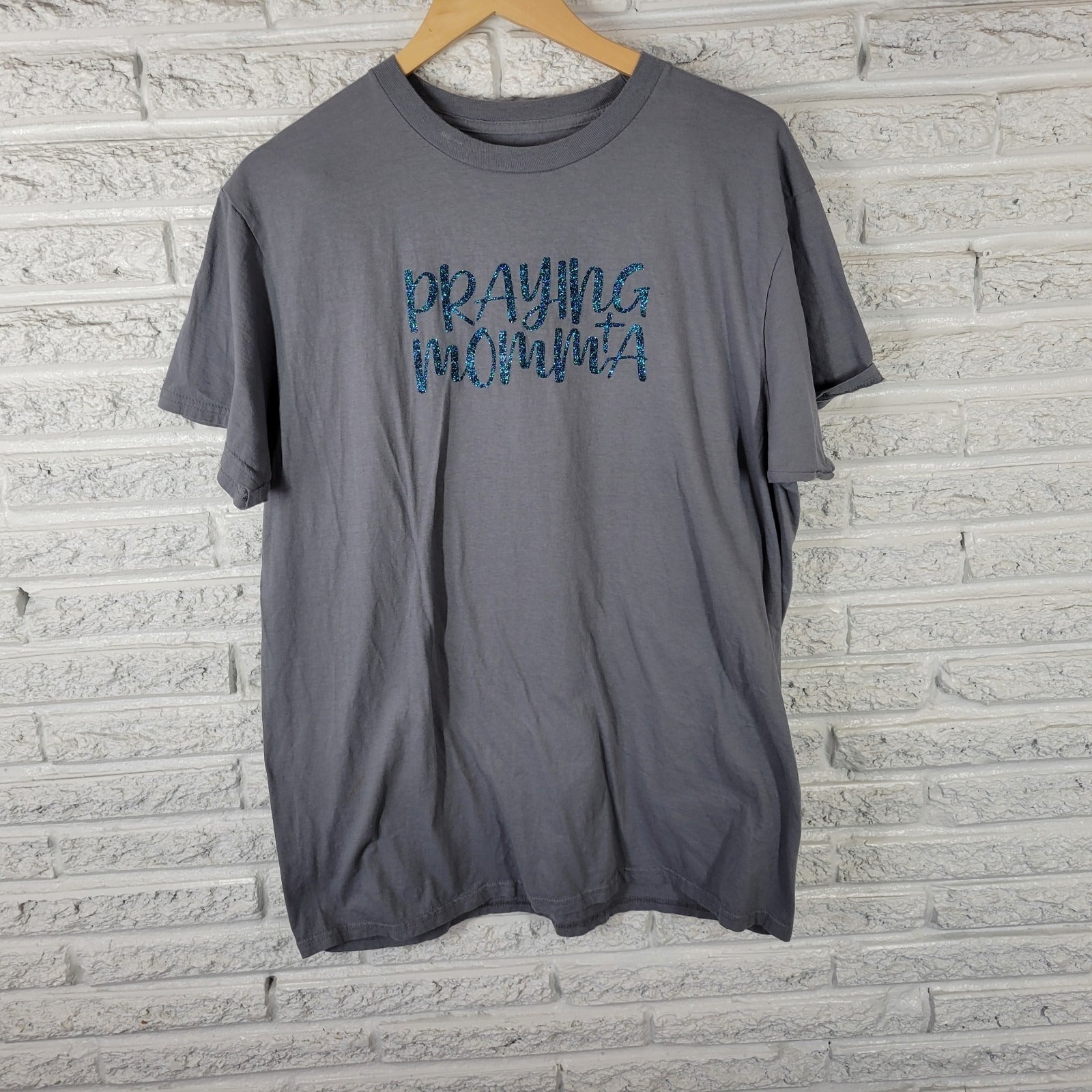 Womens Top XL Tee Short Sleeve Gray Praying Mama Glitter Christian Cotton