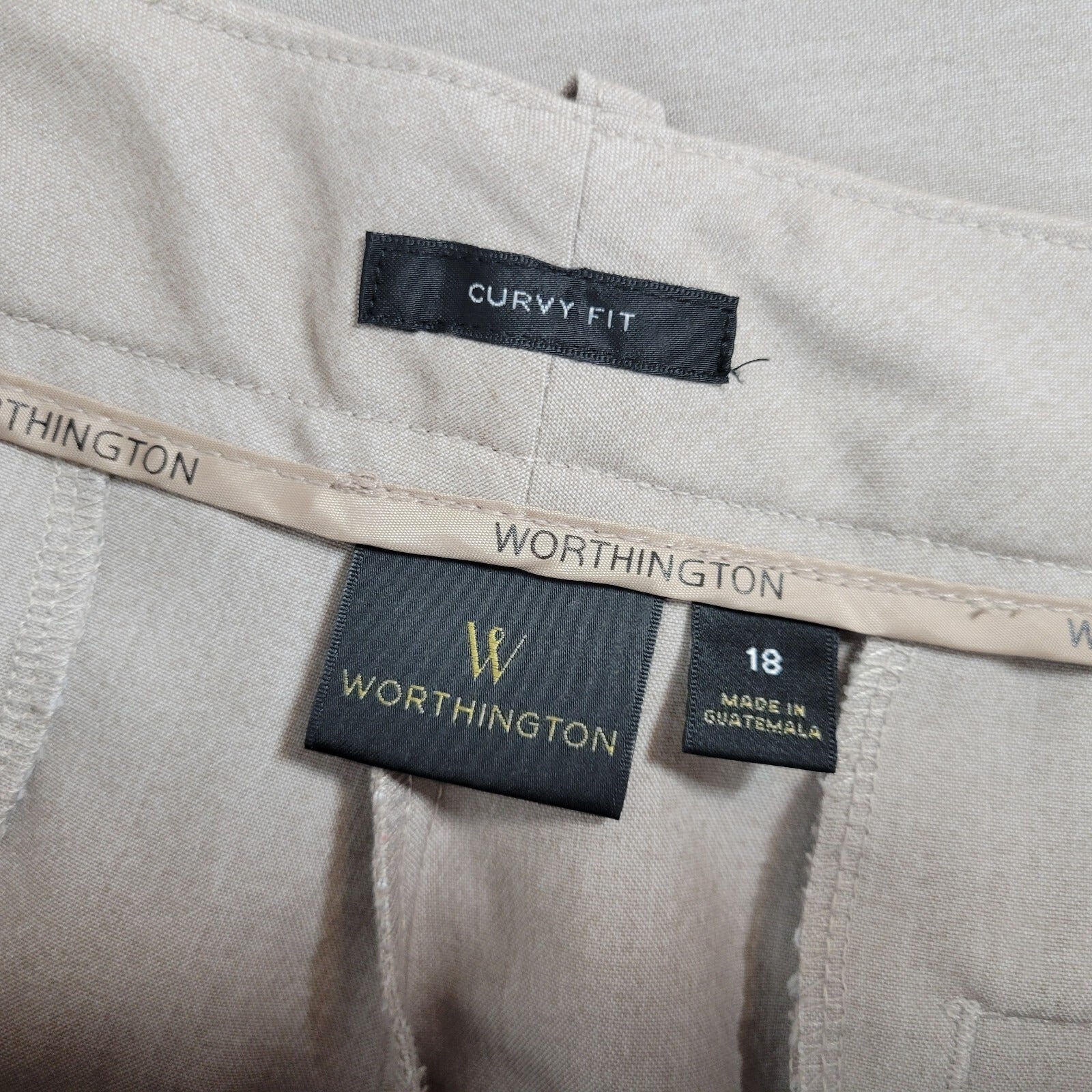 Worthington Curvy Fit Womens Pants 18 Plus Boot Cut Beige Zip Fly Poly Blend